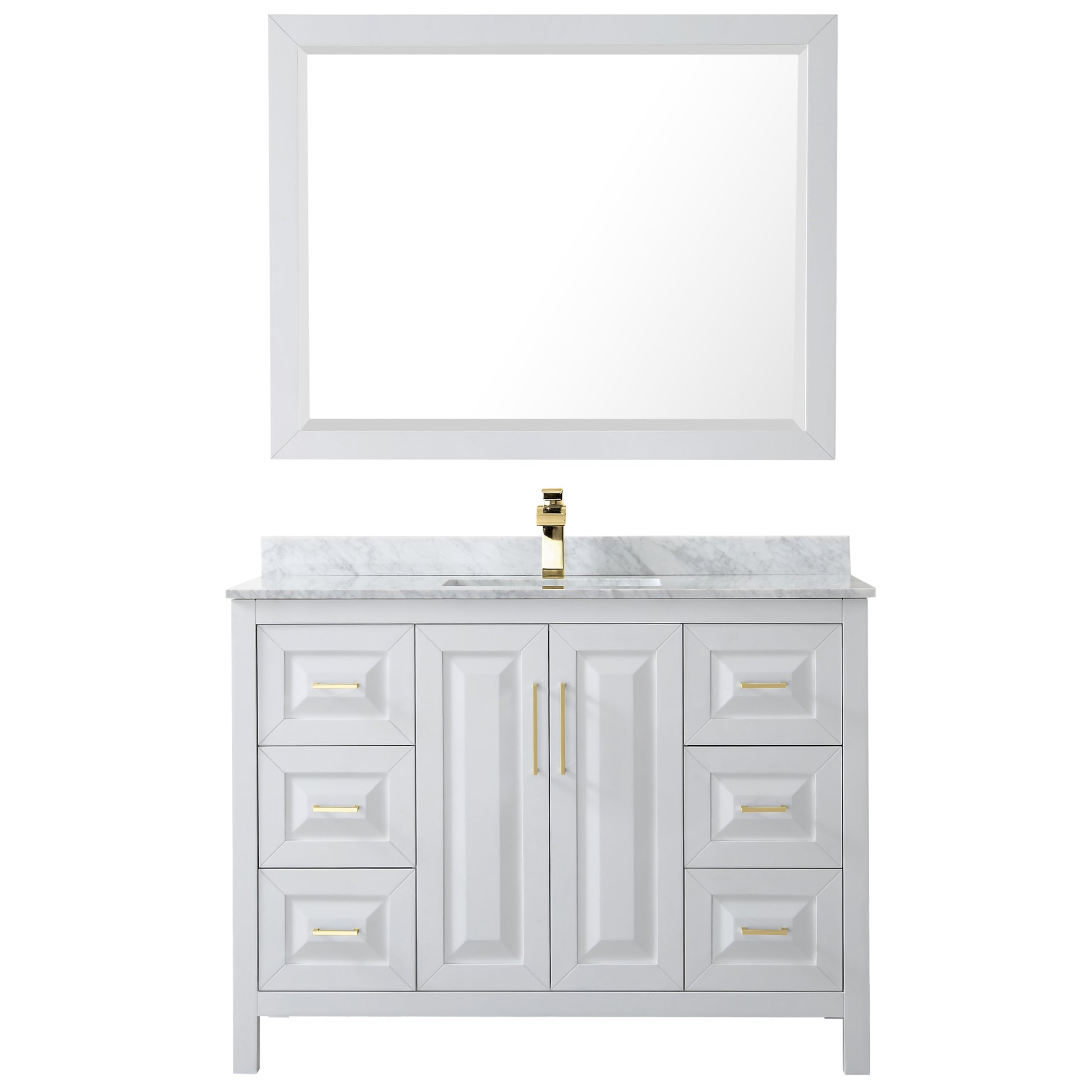 Daria 48" Single Vanity in White, Top, Square 46" Mirror, Brushed Gold Trim