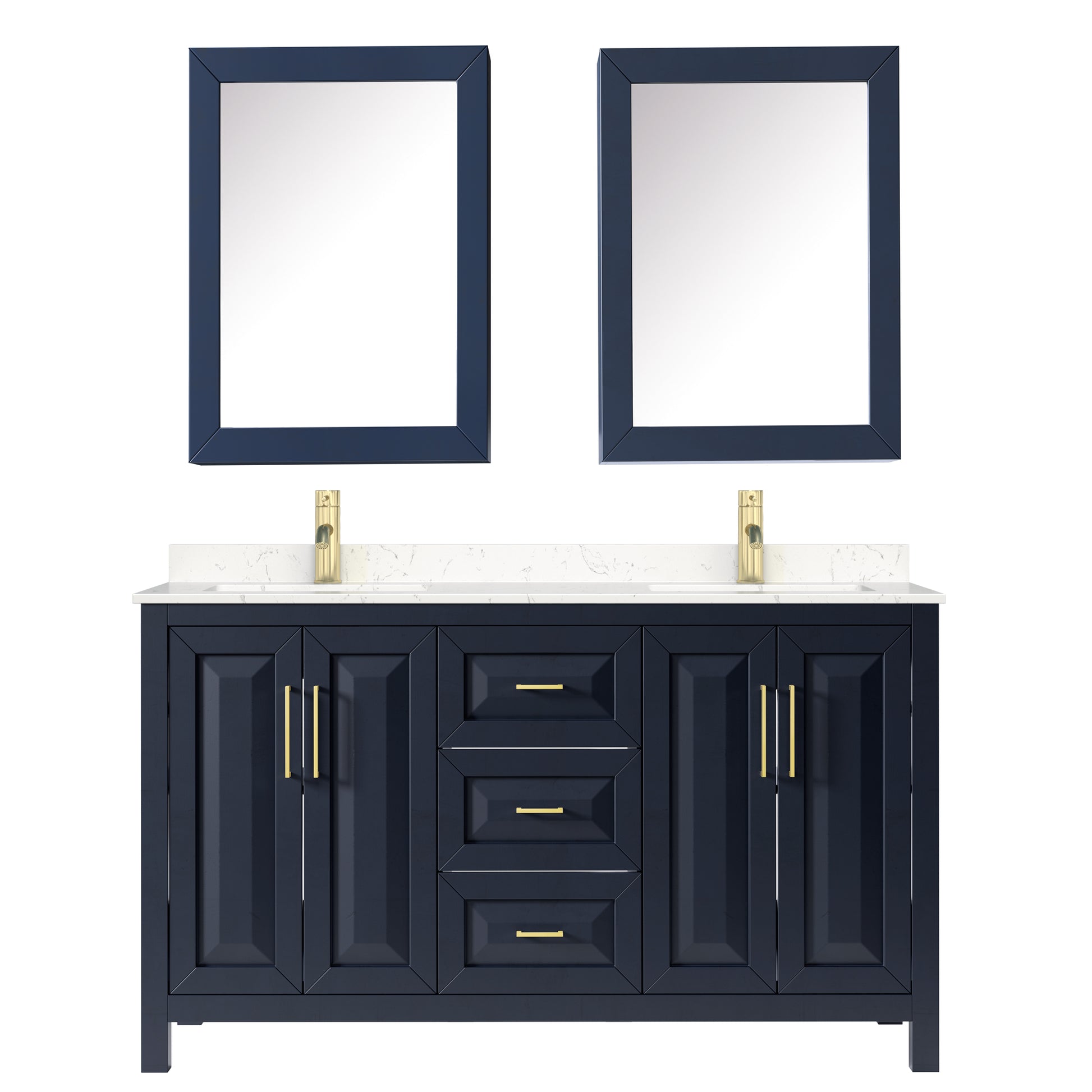 Daria 60" Double Vanity in Blue, Carrara Cultured Marble Top, Medicine Cabinets