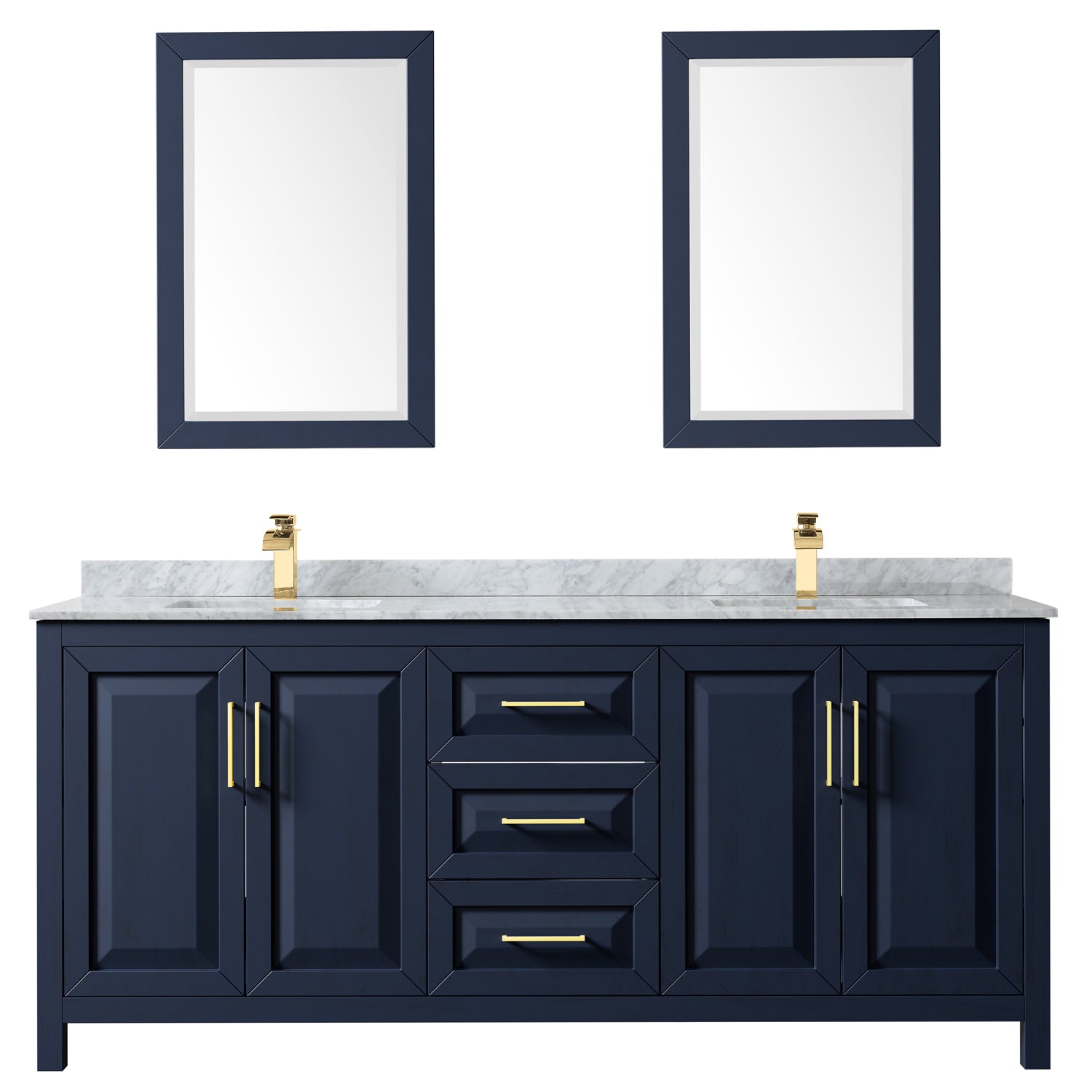 Daria 80" Double Vanity in Dark Blue, Top, Square Sinks, 24" Mirrors