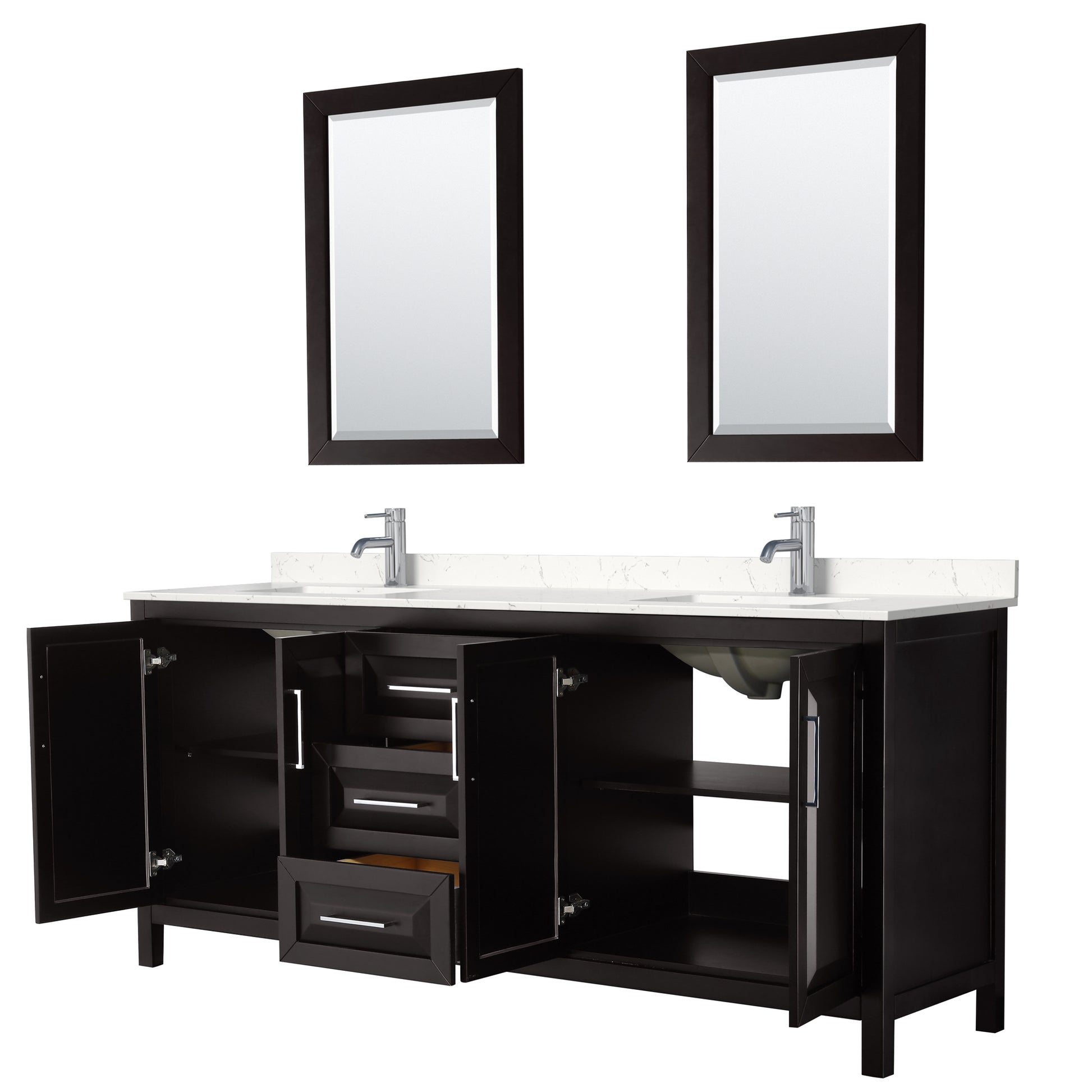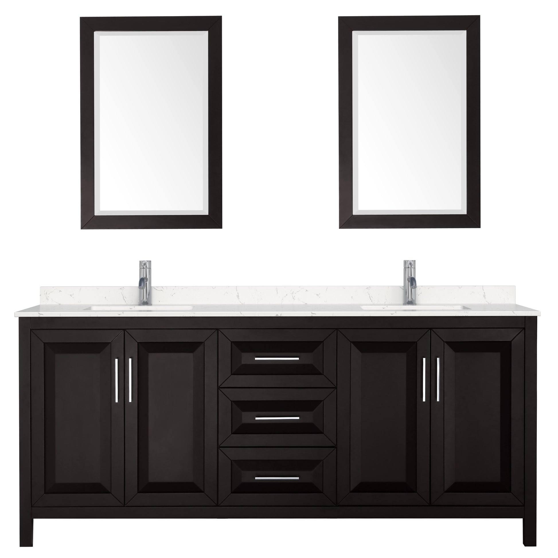 Daria 80" Double Vanity in Espresso, Carrara Cultured Marble Top, 24" Mirrors