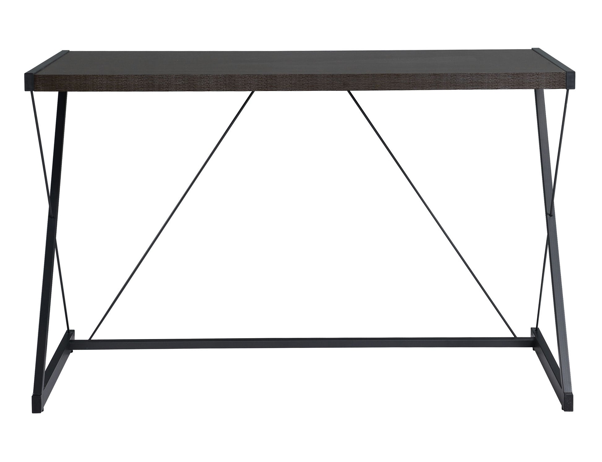 This modern design laptop desk with its Z design metal legs is sure to make a statement in any room. Available in Light Oak and Dark Oak finish tops.