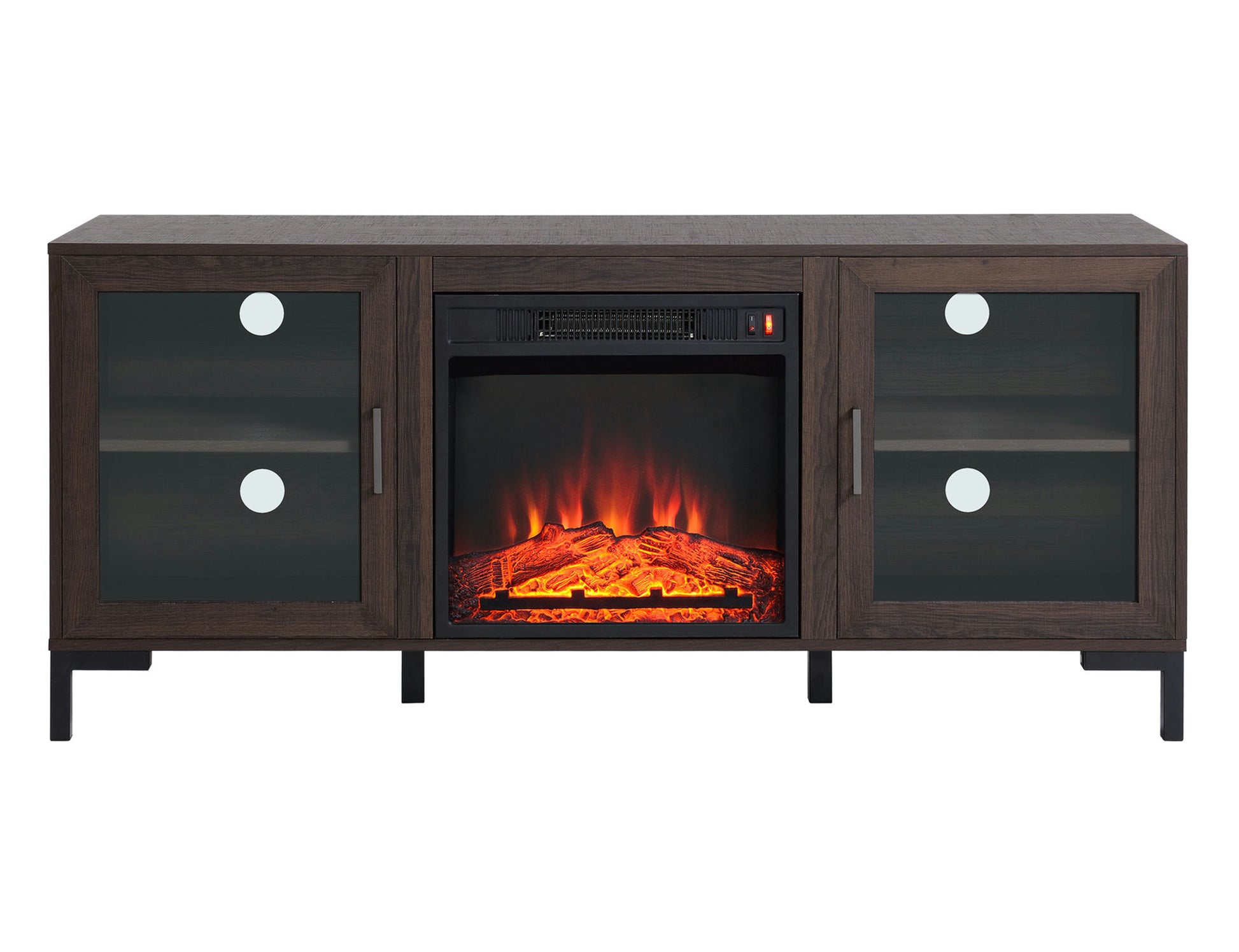 Dark Oak Finish TV Stand with Built In Electric Fireplace