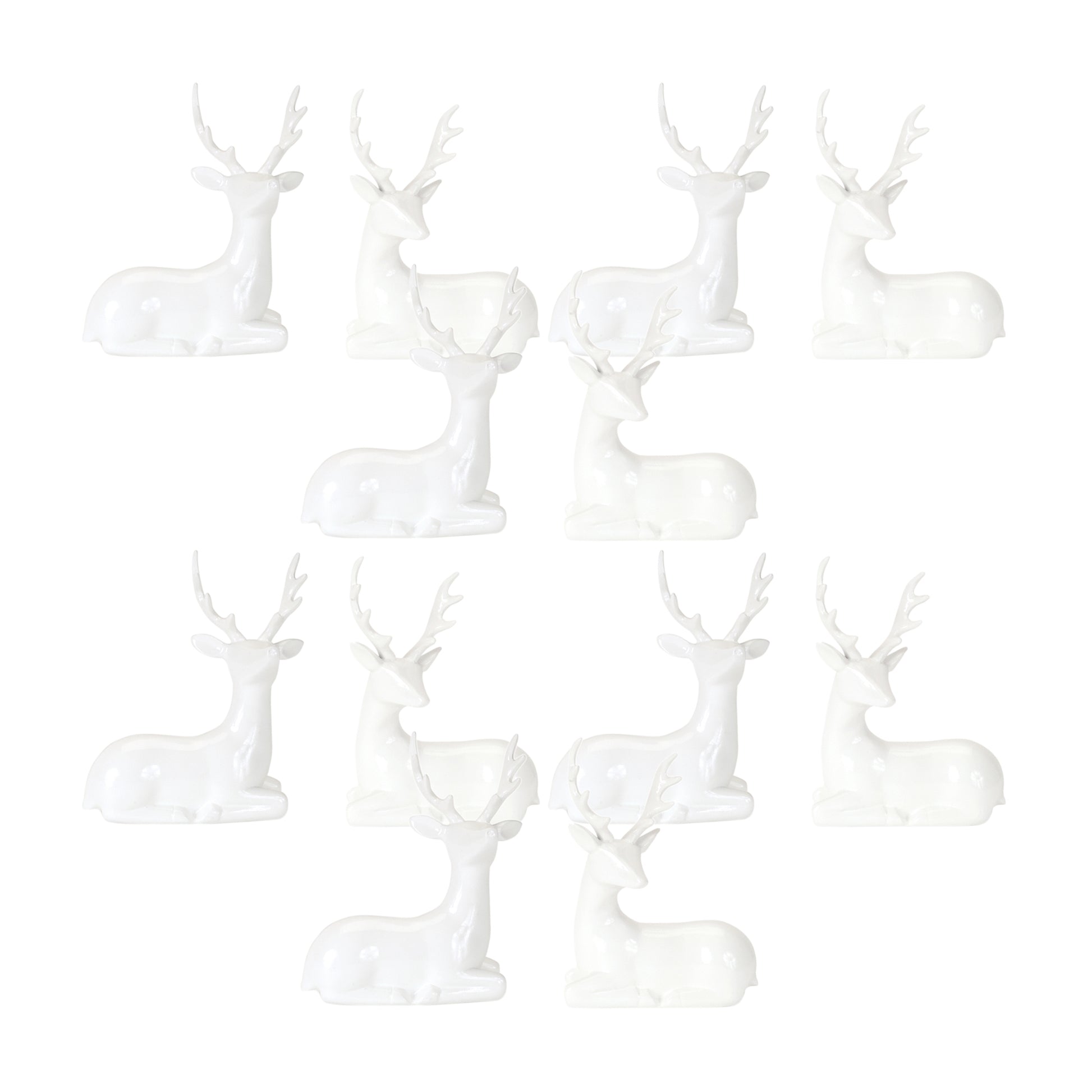 Add a modern touch of nature to your Christmas decor with this beautiful set of Deer Figurines. Featuring two assorted designs and twelve total pieces, the elegant white finish paired with the quality polyresin composition makes this set a great addition to your holiday home decor. Display the pieces together to make a statement, or display along with other decor to spread the holiday cheer.