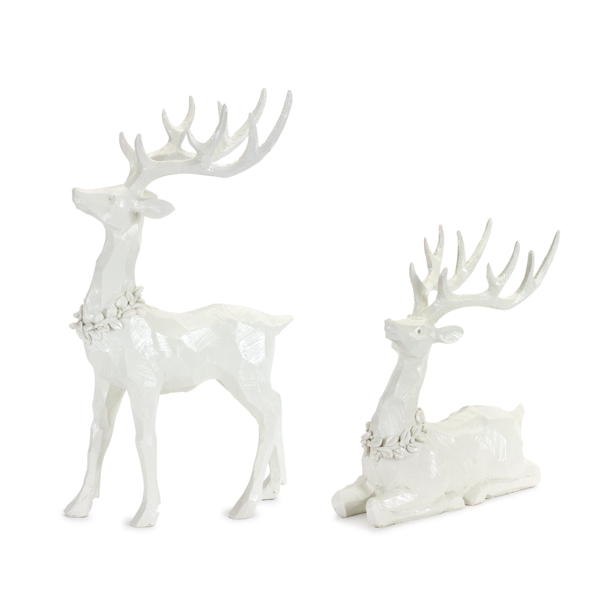 Add a modern touch of nature to your holiday decor with this beautiful set of Deer Figurines. Featuring two assorted sizes, the sleek white finish paired with the wreath accent is the perfect combination to create a stunning Christmas display. The quality polyresin and stone powder composition is sure to last for seasons to come. Display the pieces together to make a statement, or display them alongside your other holiday decor to add character to the space.