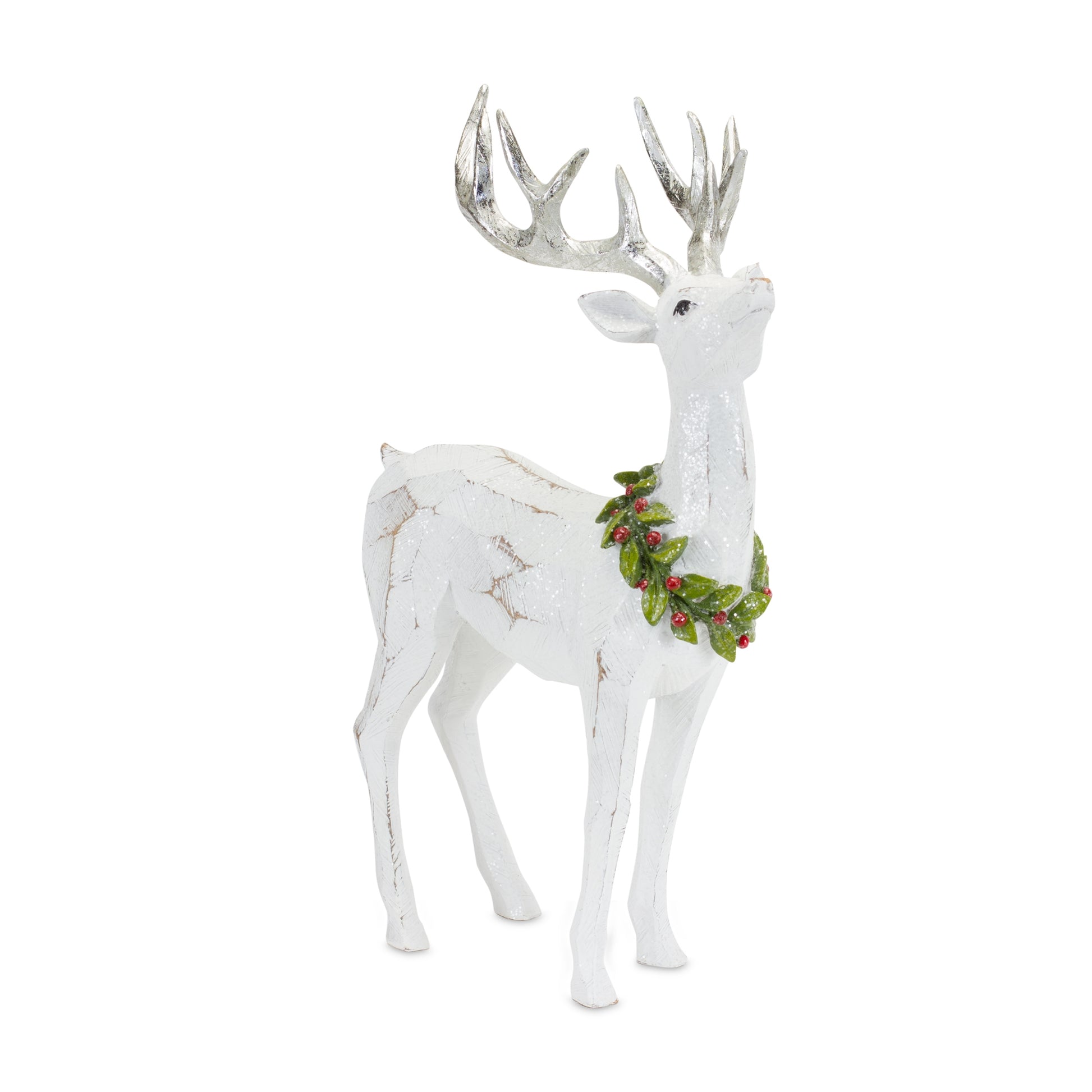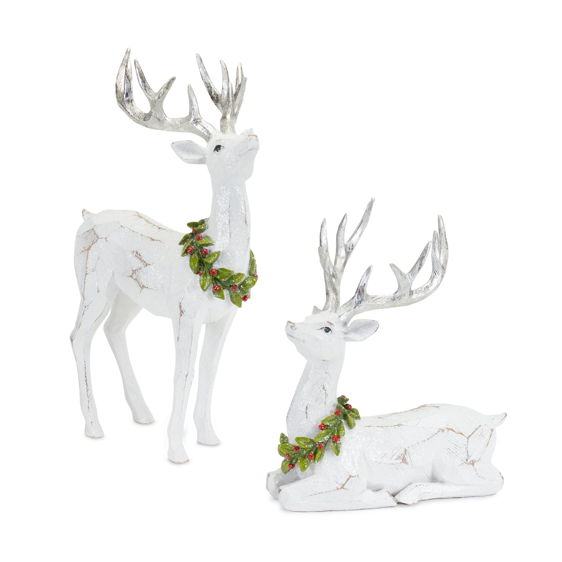 Add a modern touch of nature to your holiday decor with this beautiful set of Deer Figurines. Featuring two assorted designs, the carved faux wood design paired with the berry wreath accent is the perfect combination to create a stunning Christmas display. The quality polyresin and metal composition is sure to last for seasons to come. Display the pieces together to make a statement, or display them alongside your other holiday decor to add character to the space.