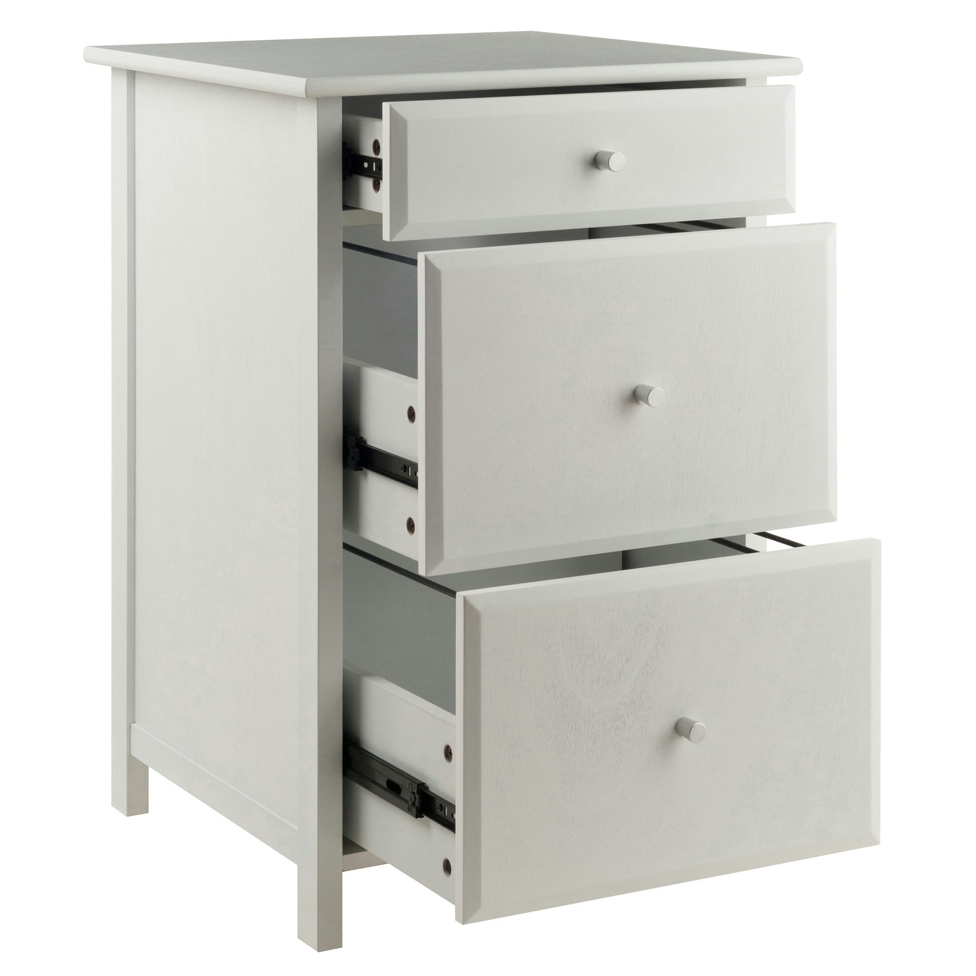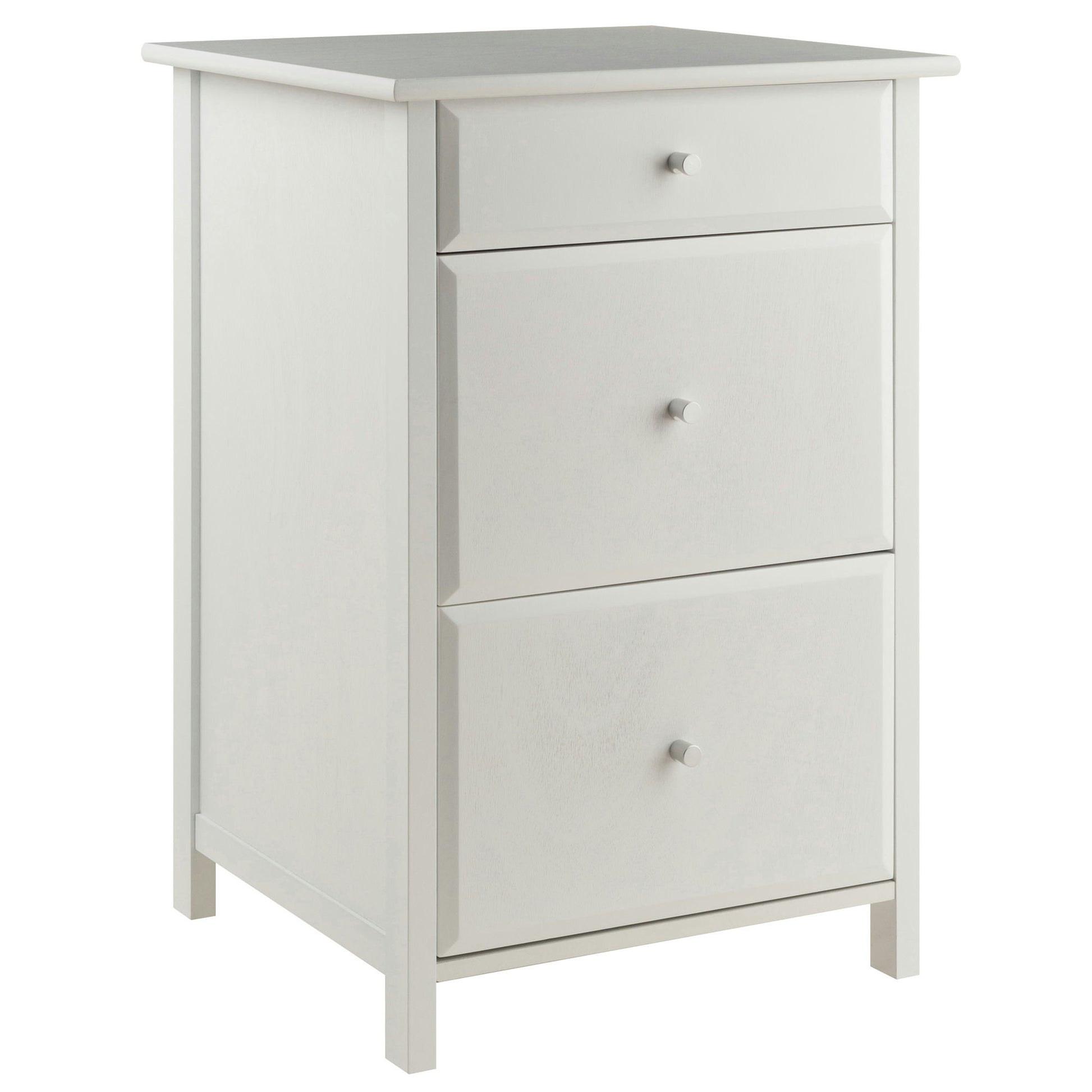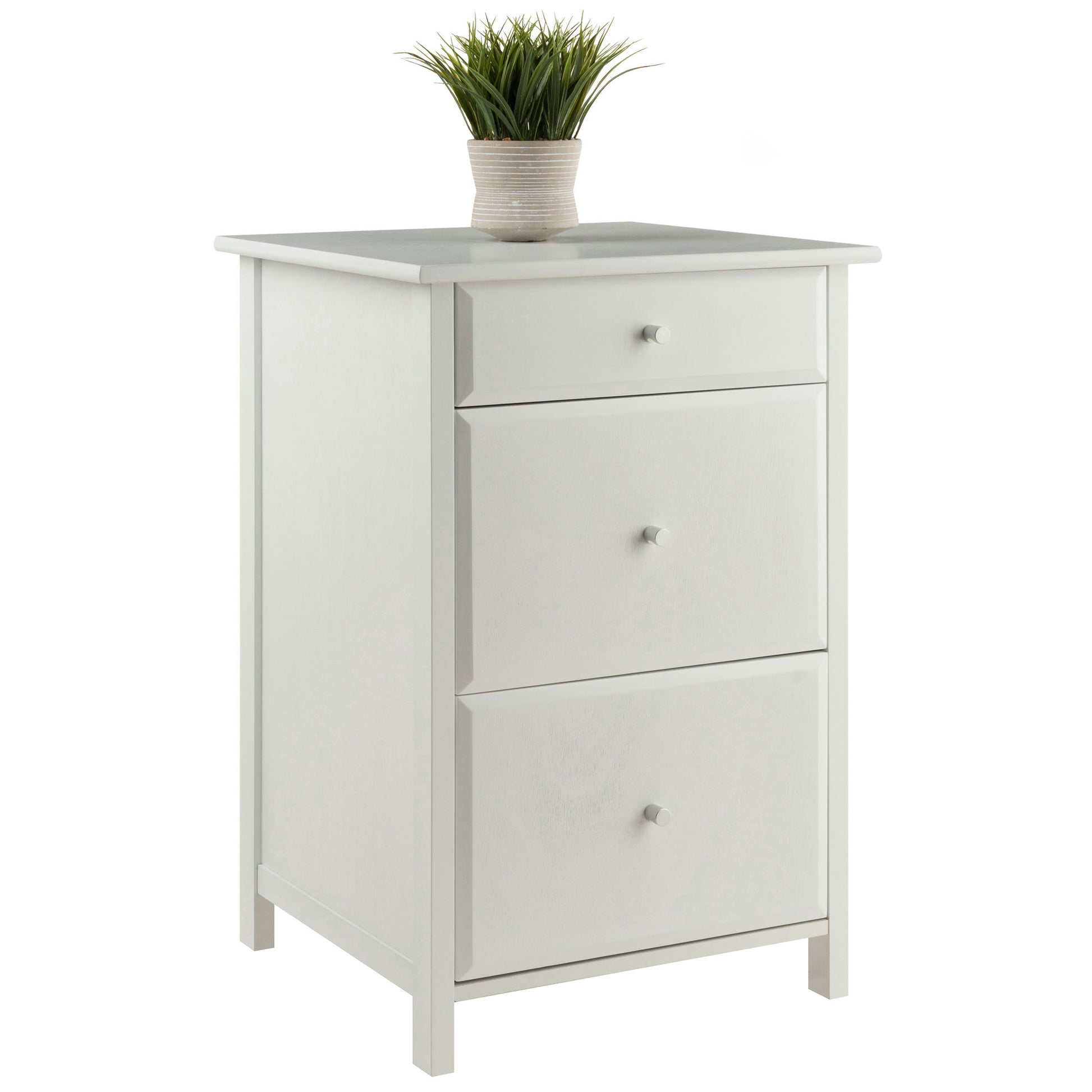 The Delta File Cabinet is a practical and handsome way to store your important files and paperwork. Finished in white, it will enhance any professional or home office space. Two lower drawers offer ample room for both legal and letter-sized files, and the top drawer is perfect for smaller items, such as pens, pads, envelopes, and more. It can also be used without the file rods as a storage cabinet to keep office supplies within easy reach. Overall dimensions are 30.7"H x 20.8"W x 20.2"D. Made of composite wood.