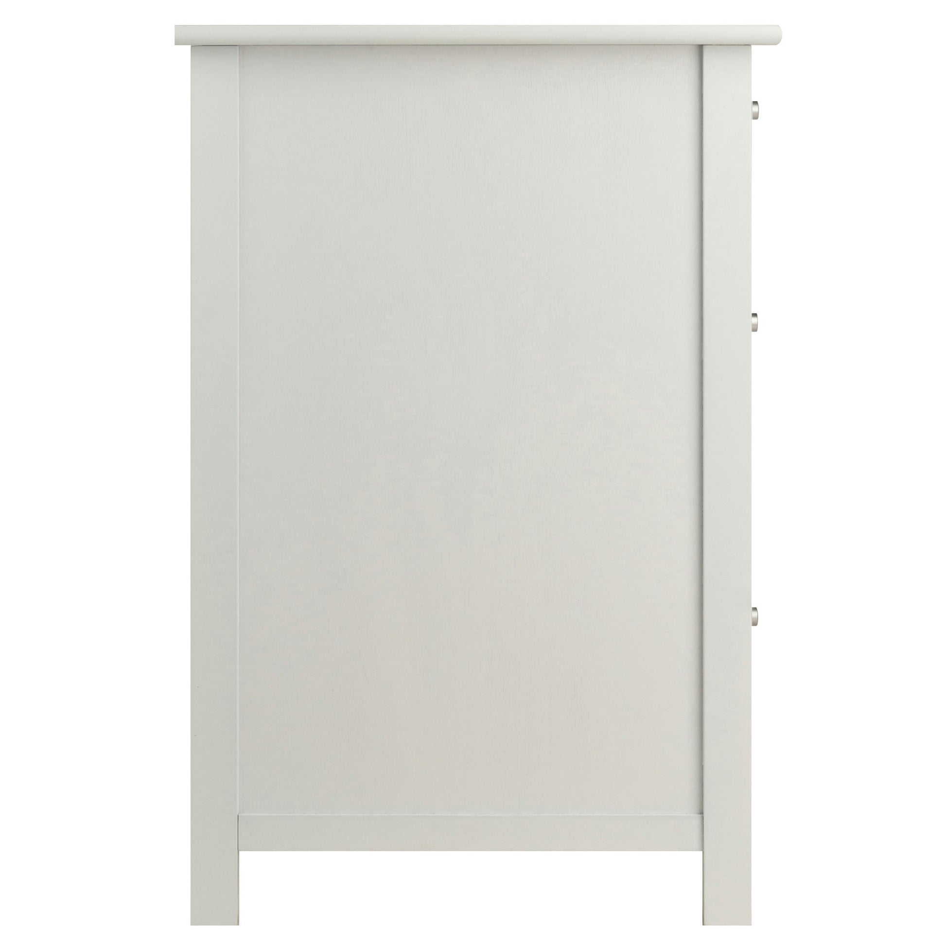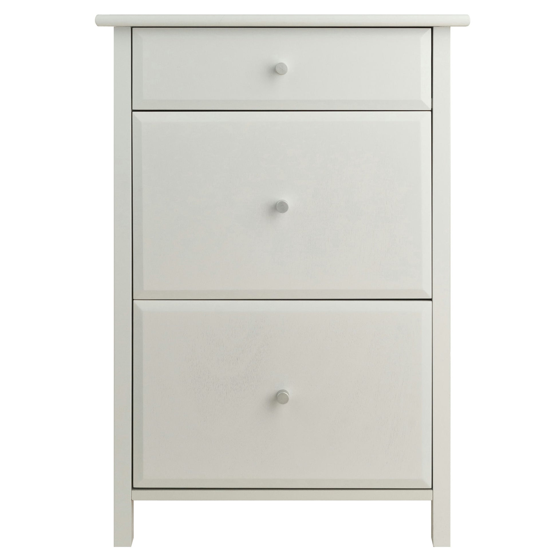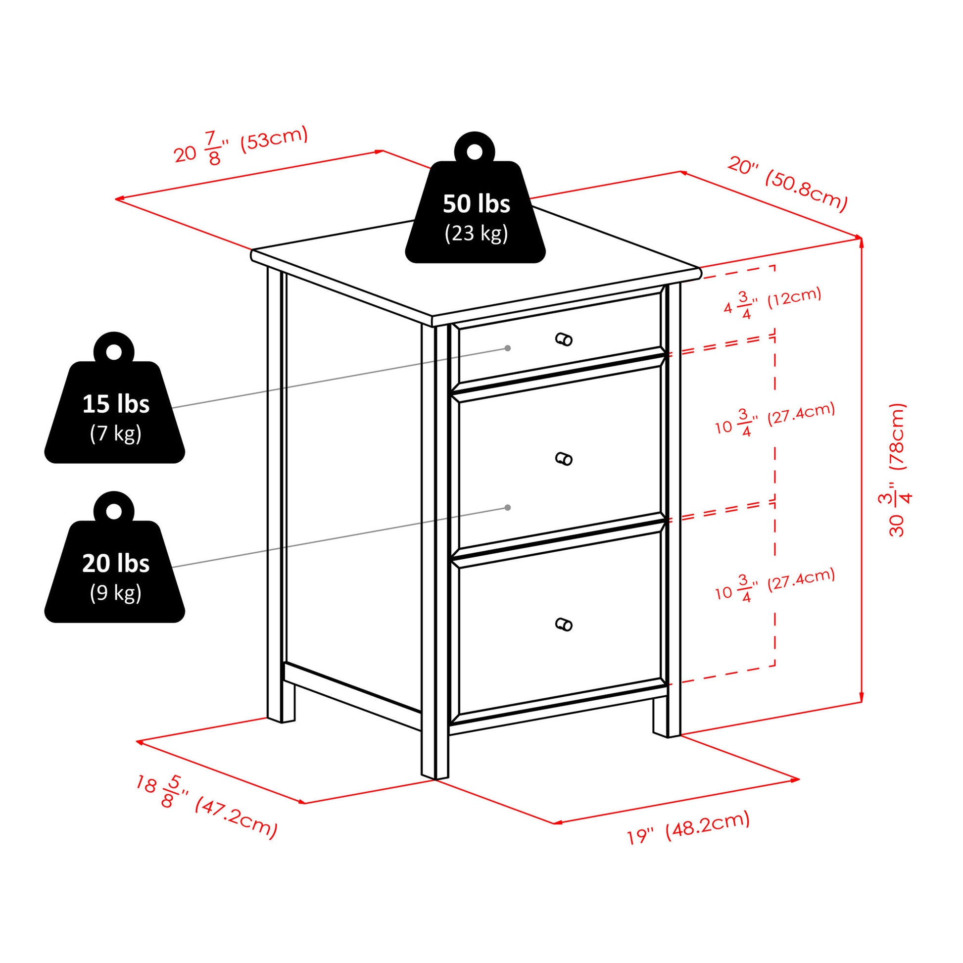 The Delta File Cabinet is a practical and handsome way to store your important files and paperwork. Finished in white, it will enhance any professional or home office space. Two lower drawers offer ample room for both legal and letter-sized files, and the top drawer is perfect for smaller items, such as pens, pads, envelopes, and more. It can also be used without the file rods as a storage cabinet to keep office supplies within easy reach. Overall dimensions are 30.7"H x 20.8"W x 20.2"D. Made of composite wood.