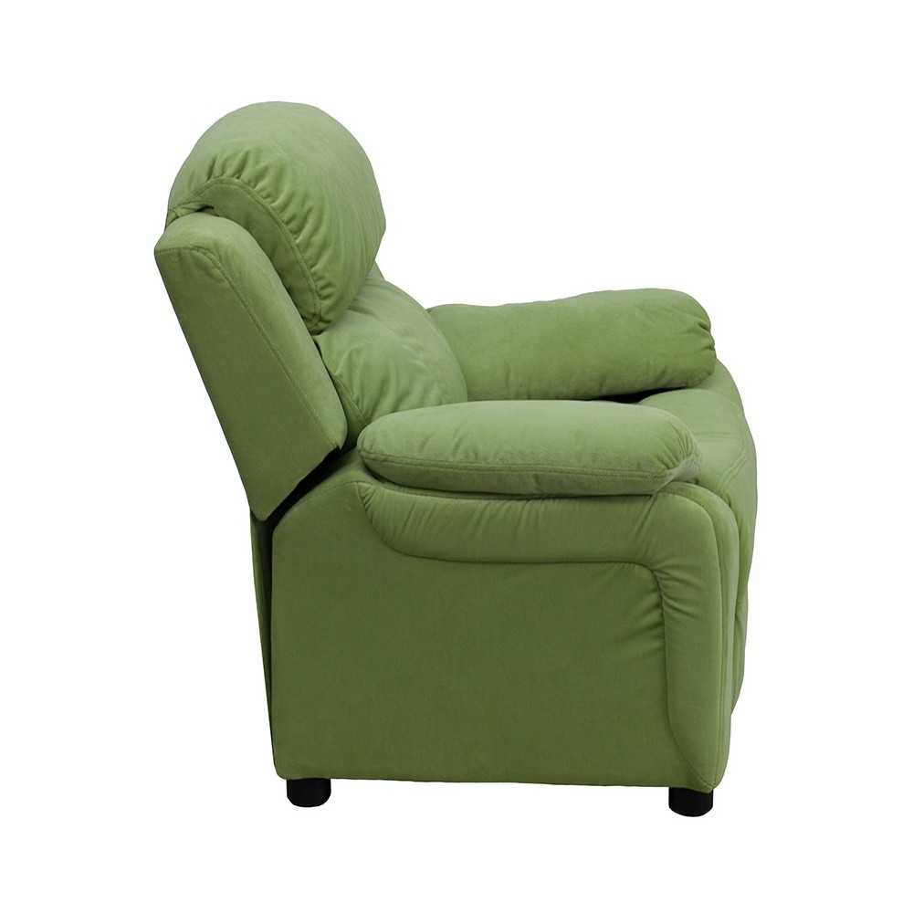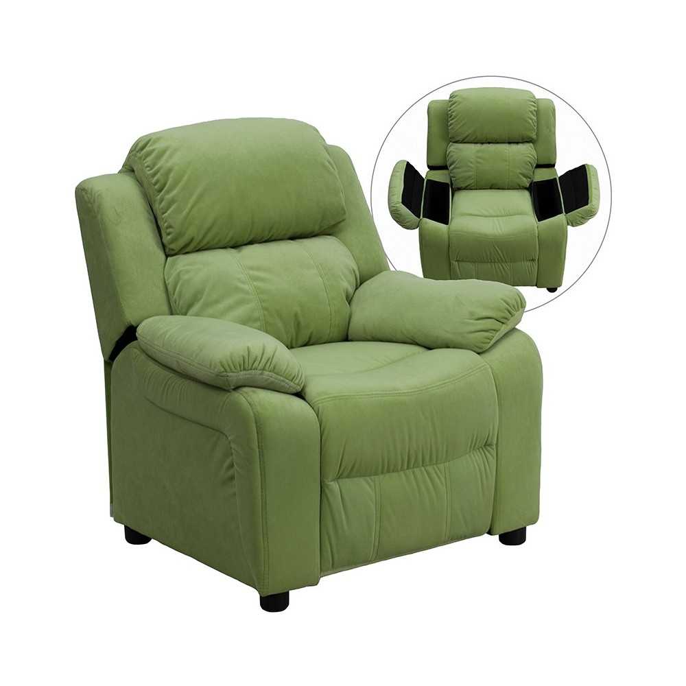 Deluxe Padded Contemporary Avocado Microfiber Kids Recliner with Storage Arms