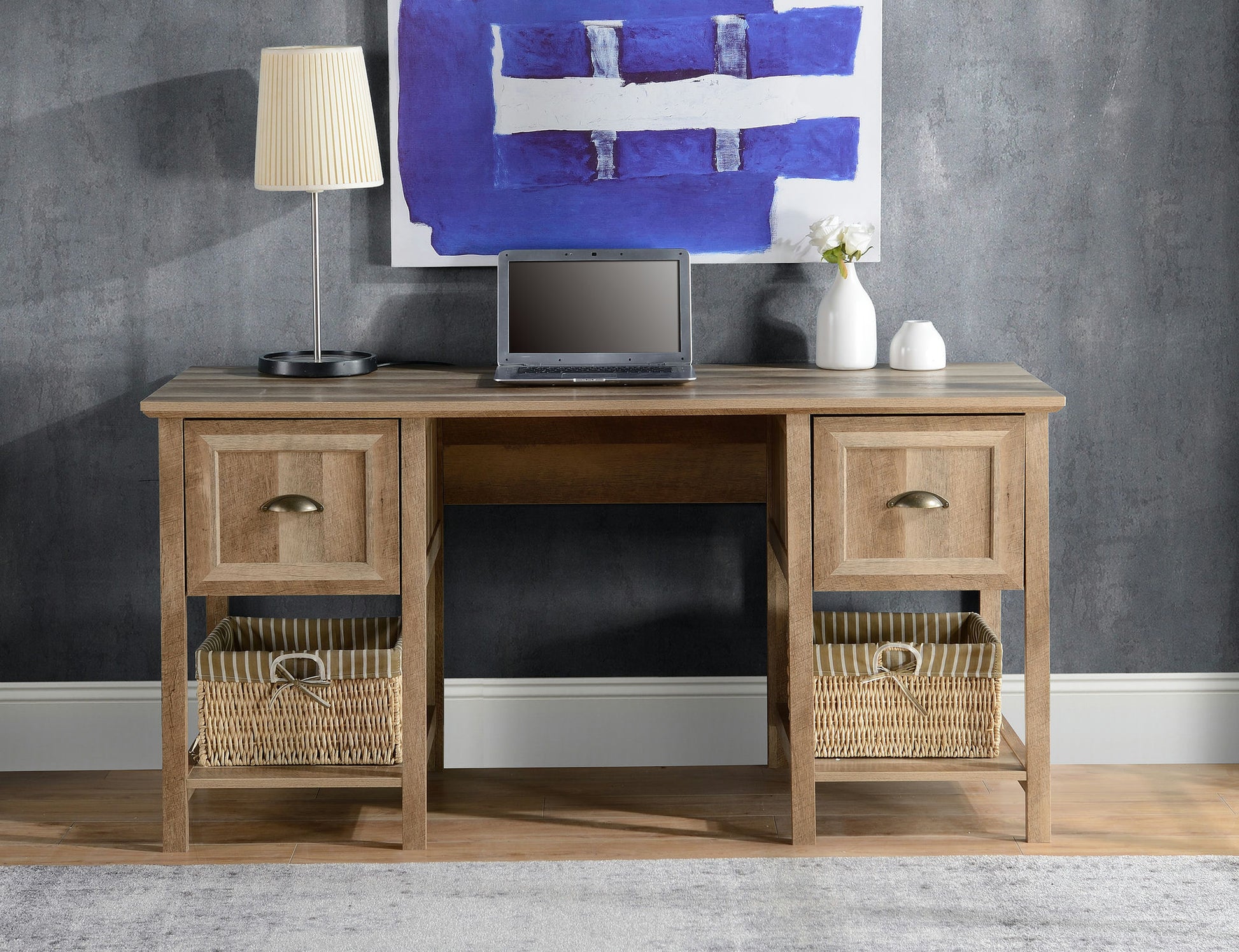 This rustic oak look office computer desk is the perfect addition to any workspace. Storage drawer and lower shelf provide lots of extra space and wood top gives plenty of space for writing or laptop.