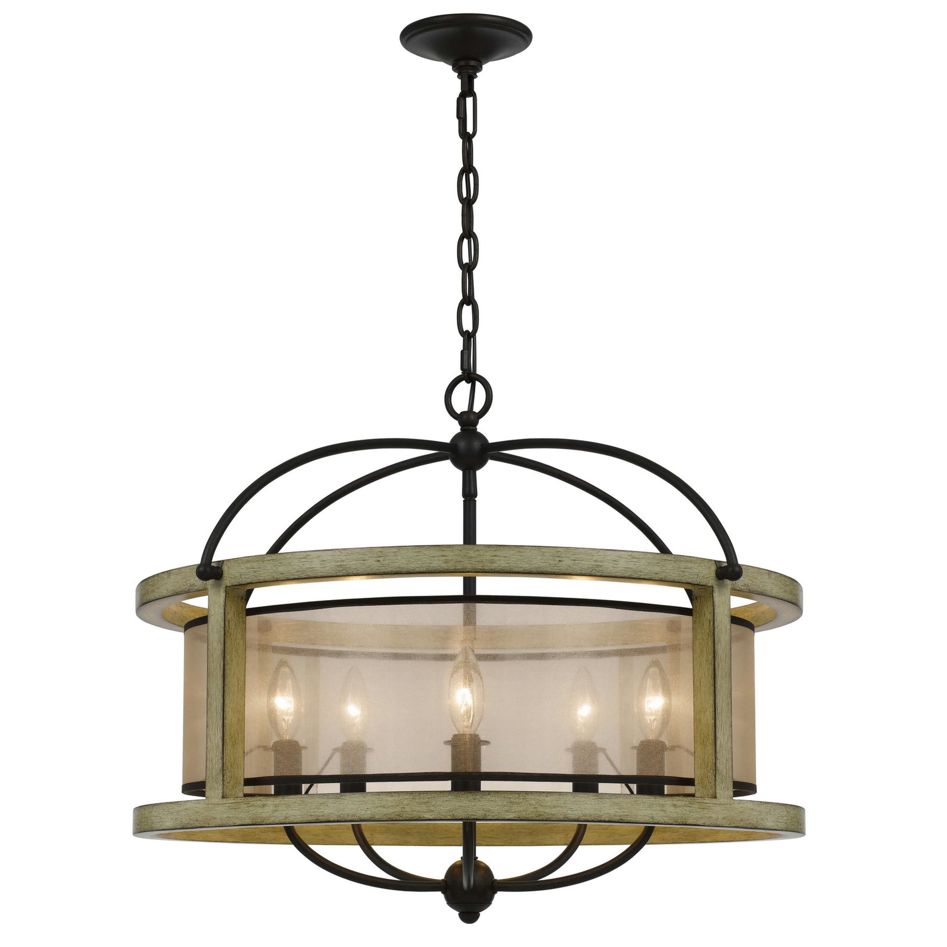 Palencia rubber wood round chandelier with organza shade