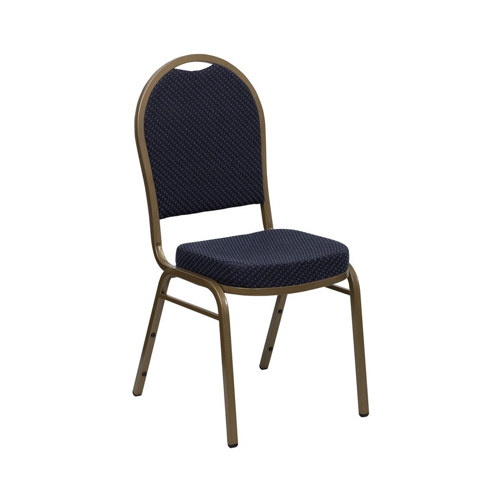 Dome Back Stacking Banquet Chair in Navy Patterned Fabric - Gold Frame