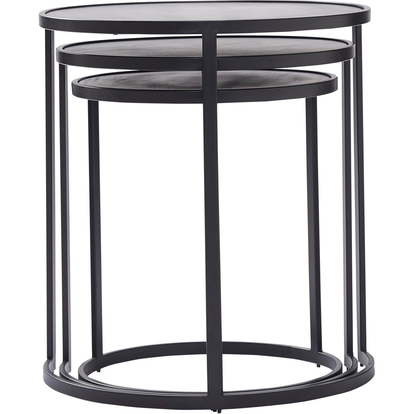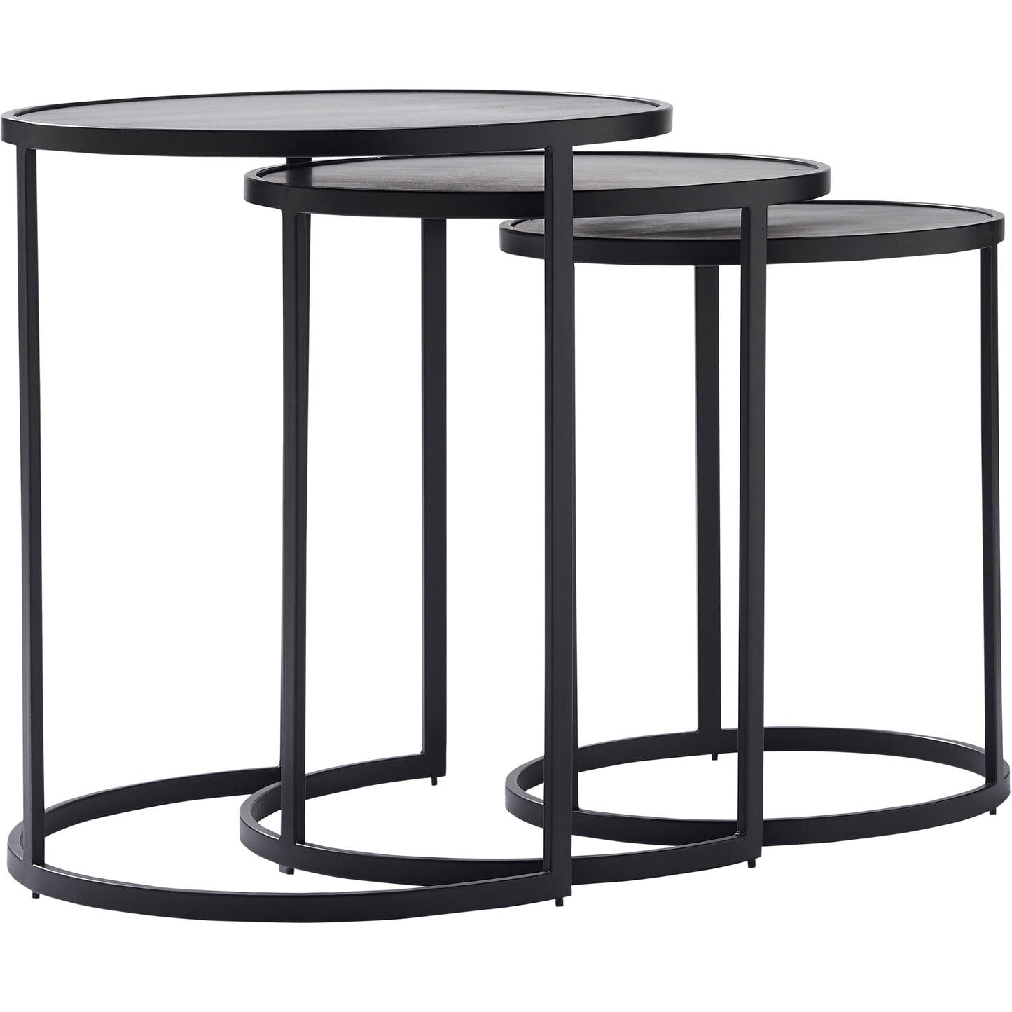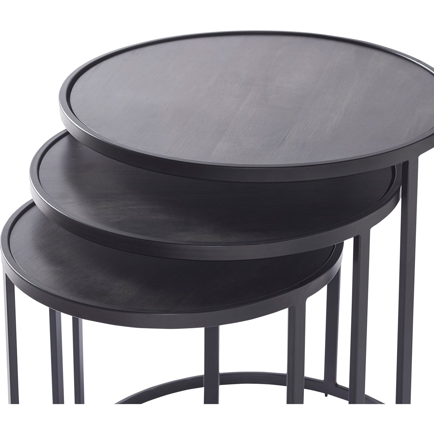 Proving three is better than one, this table set carries endless opportunity into the industrial or contemporary interior. The stacking style of each piece not only allows for versatility in use, but prevents storage solutions from overpowering the room. These impactful tables are constructed of mango wood with black powder-coated iron legs.