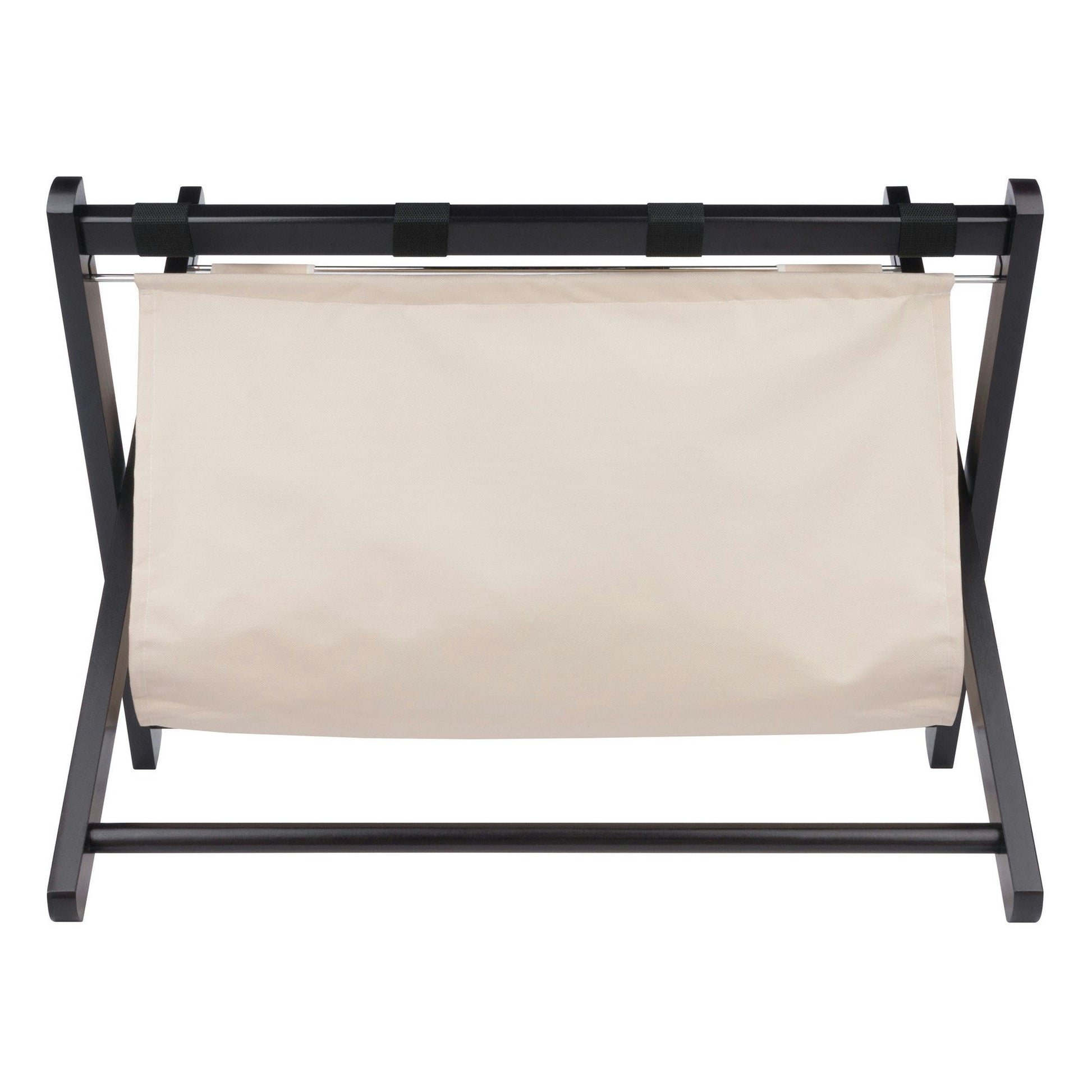 Easily unpack your suitcase on the Solid Wood Dora Luggage Rack. And use the removable Oxford cloth basket to hold those items you need at your fingertips or to collect laundry. The polyester basket is removable, yet folds nicely with the rack for quick and easy storage. An ideal solution for houseguests or for when the kids come home from college for the weekend.