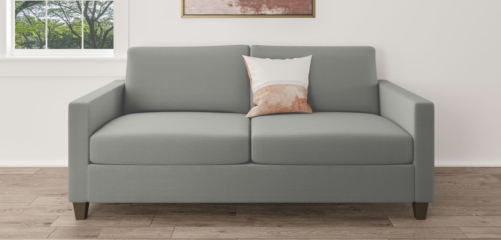 Whether used on its own or as part of a larger seating arrangement, you're adding comfort and style with this Homestyles Dylan Sofa. Perfect for any space from a small apartment to a great room, it delivers clean lines, contoured track arms, and the neutral steel colored polyester fabric is easy to care for and durable. Supportive, pillow-back cushions provide superior comfort, and the hardwood frame creates a solid foundation.