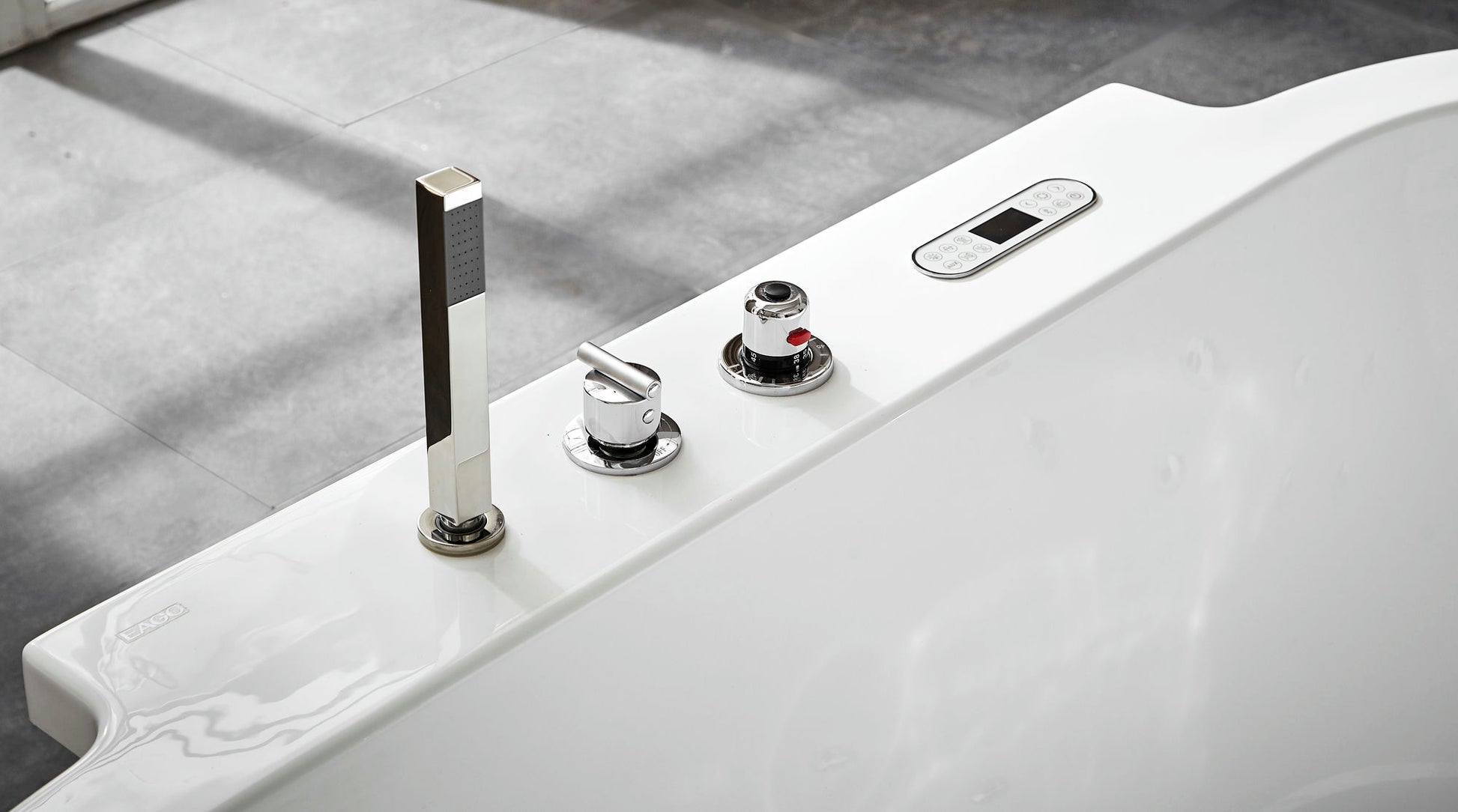 - Keypad Control Panel: Stylish control panel easily operates the bathtubs whirlpool jets, inline heater, digital sound system, and chromatherapy lighting.