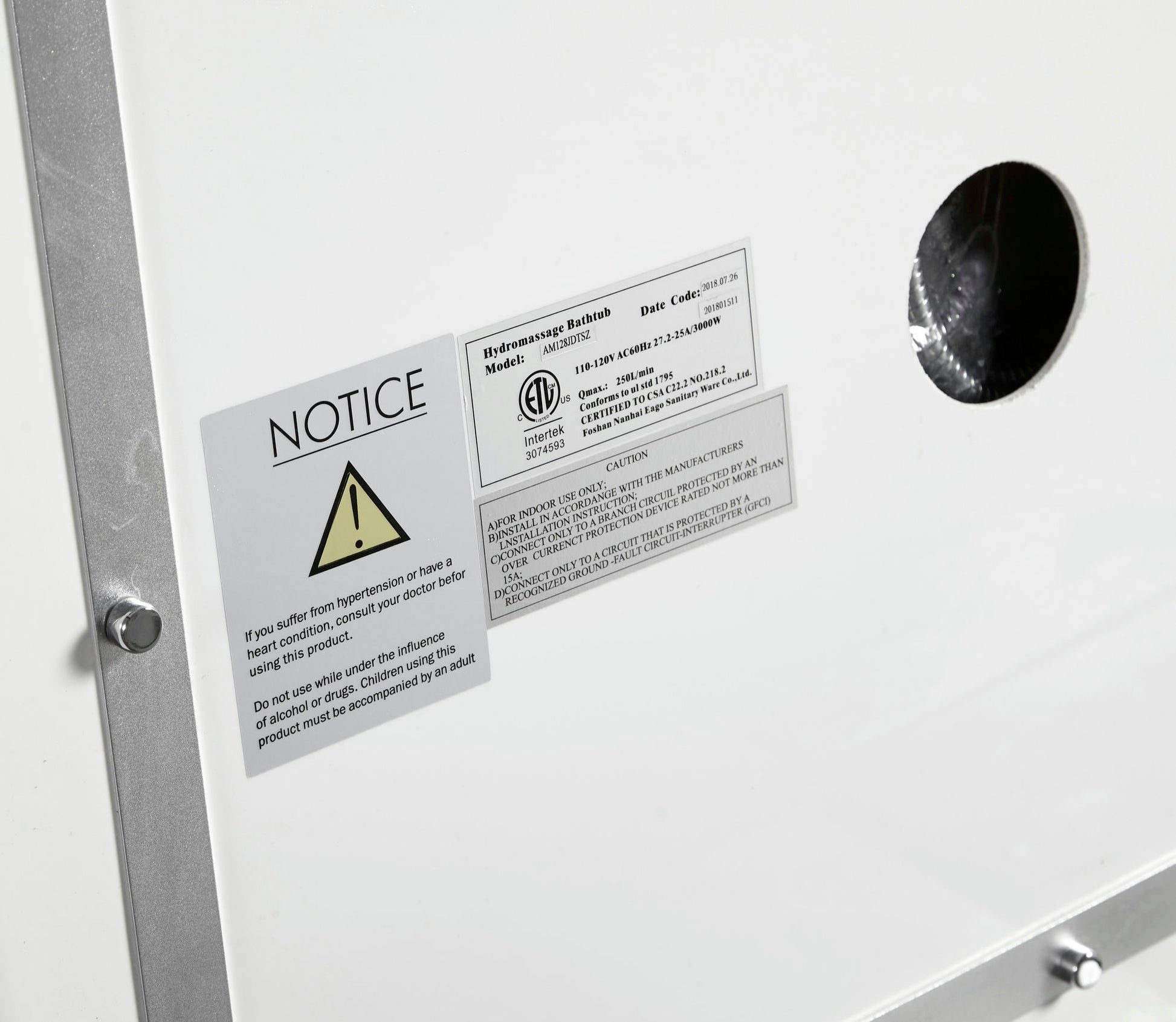 - Auto protection function for pump (if there is not enough water in the whirlpool bathtub the pump cannot be started) and 60 minutes auto shutdown function.