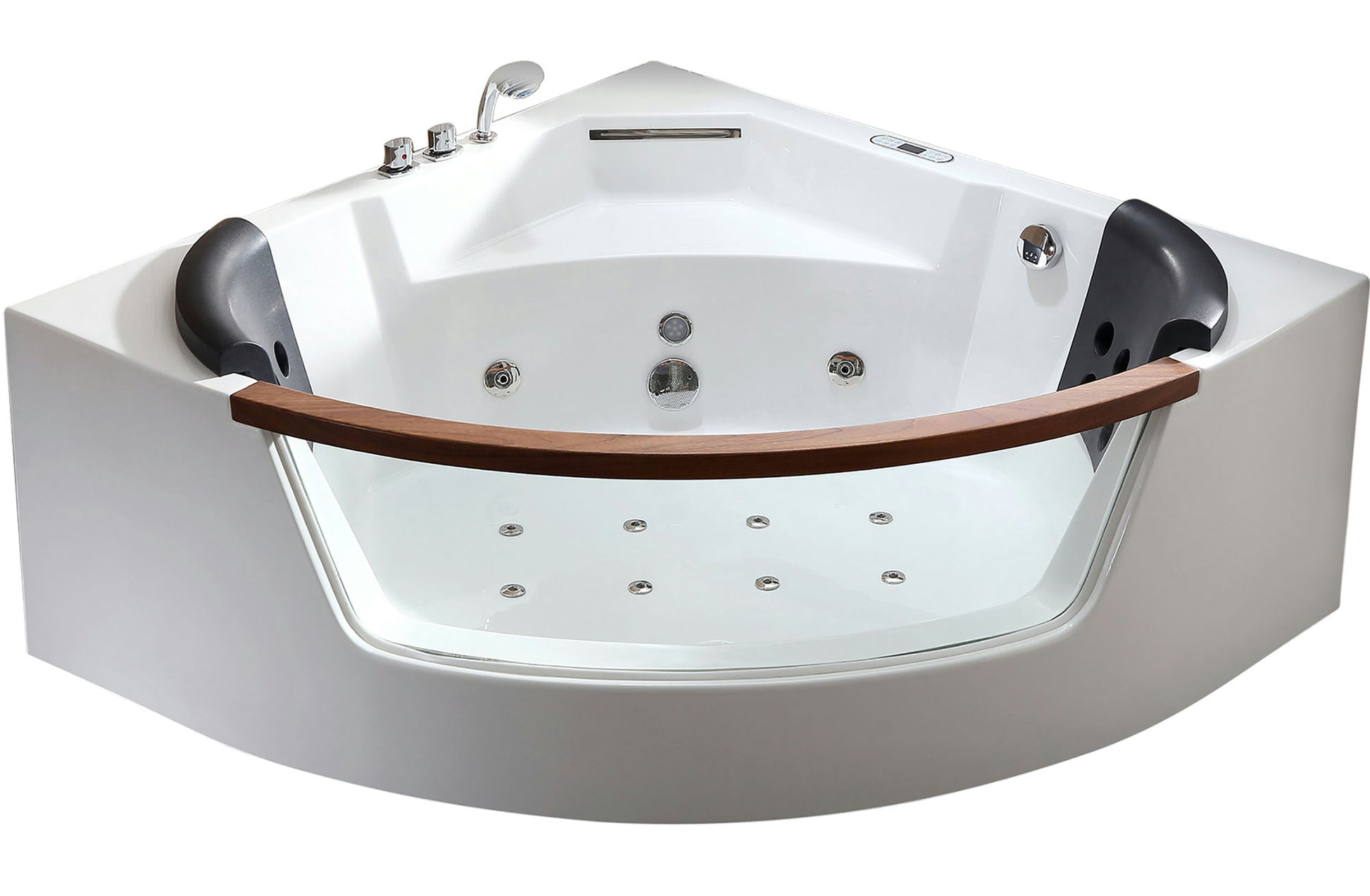 The beautiful AM197ETL EAGO whirlpool bath tub is truly one of a kind. Filled with cool gadgets and effects like the built in stereo, bluetooth, lighting, and button jets. This ETL Certified tub features a functional and space saving corner design with a beautiful glass front panel which will add the finishing touch to any bathroom. Indulge in a state of complete relaxation and tranquility while enjoying all of the unique features that this tub has to offer.