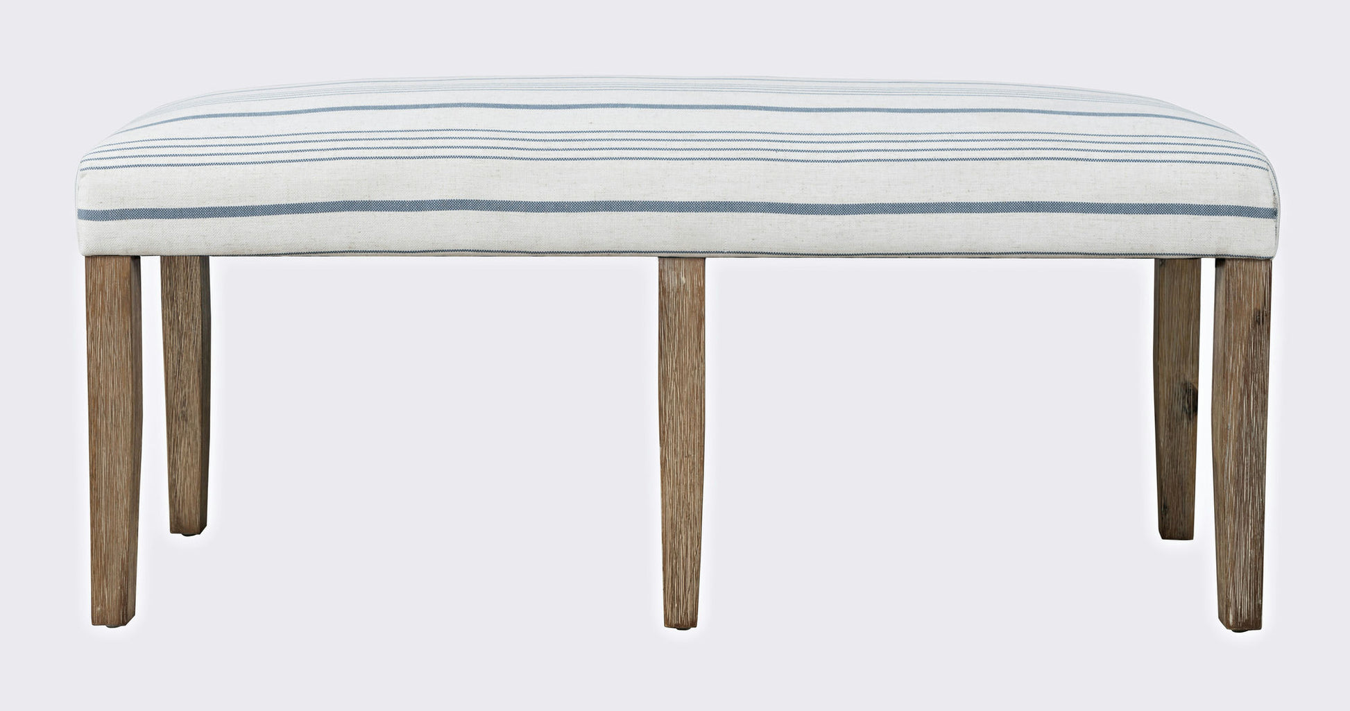 Classic American design with a modern style, the Eastern Tides collection invites a casual feel to your kitchen or dining room with a blended wire brush finish that everyone will love. This bench measures 46" long and makes the perfect addition to your home, and can be used in a bedroom, dining room, or hallway with soft upholster