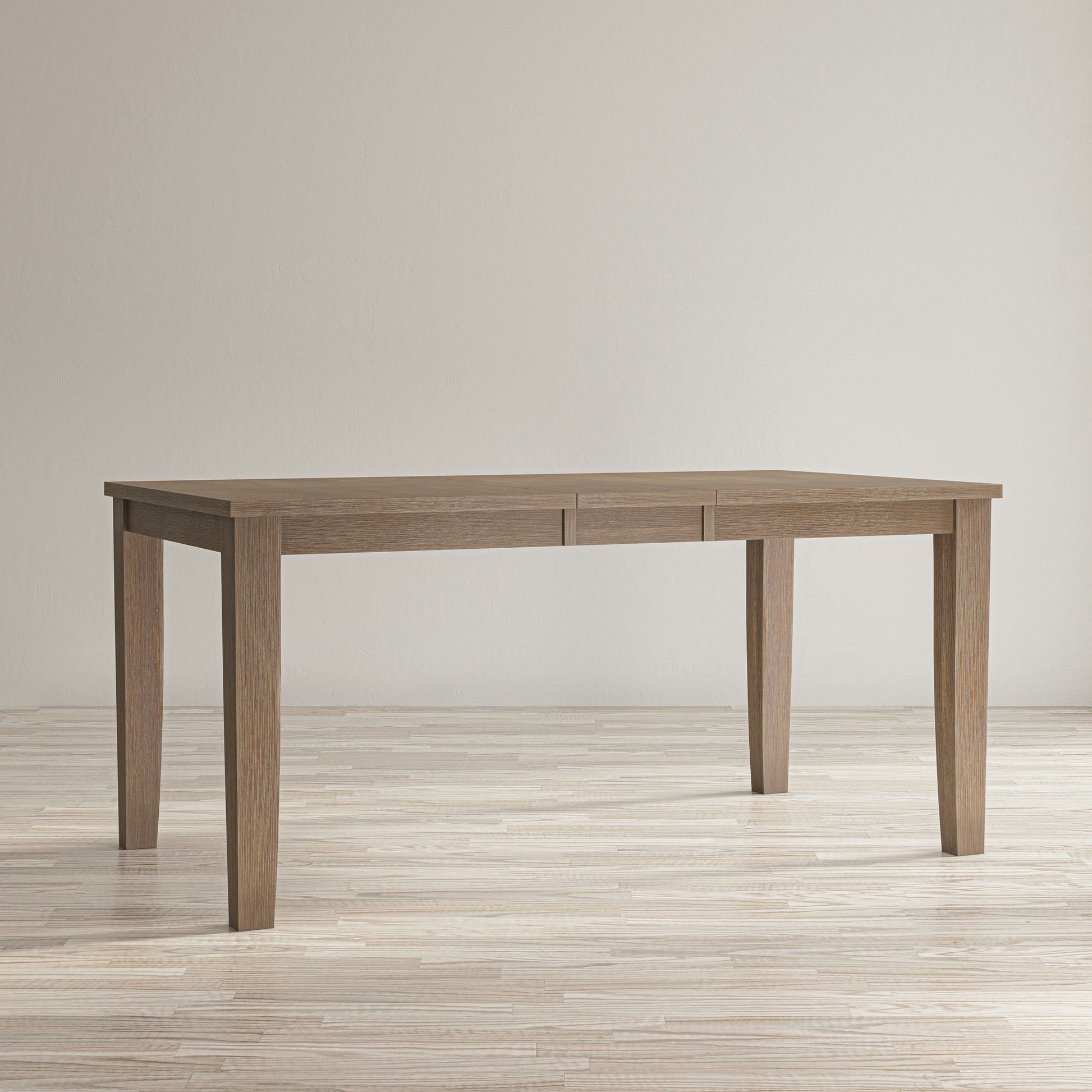 Classic American design with a modern style, the Eastern Tides collection invites a casual feel to your kitchen or dining room with a blended wire brush finish that everyone will love. This extendable dining table measures 66" x 36" x 30"H when extended but can easily fit into compact spaces by removing the leaf to make the size a more manageable 54" x 36" x 30"H for the perfect addition to your home.