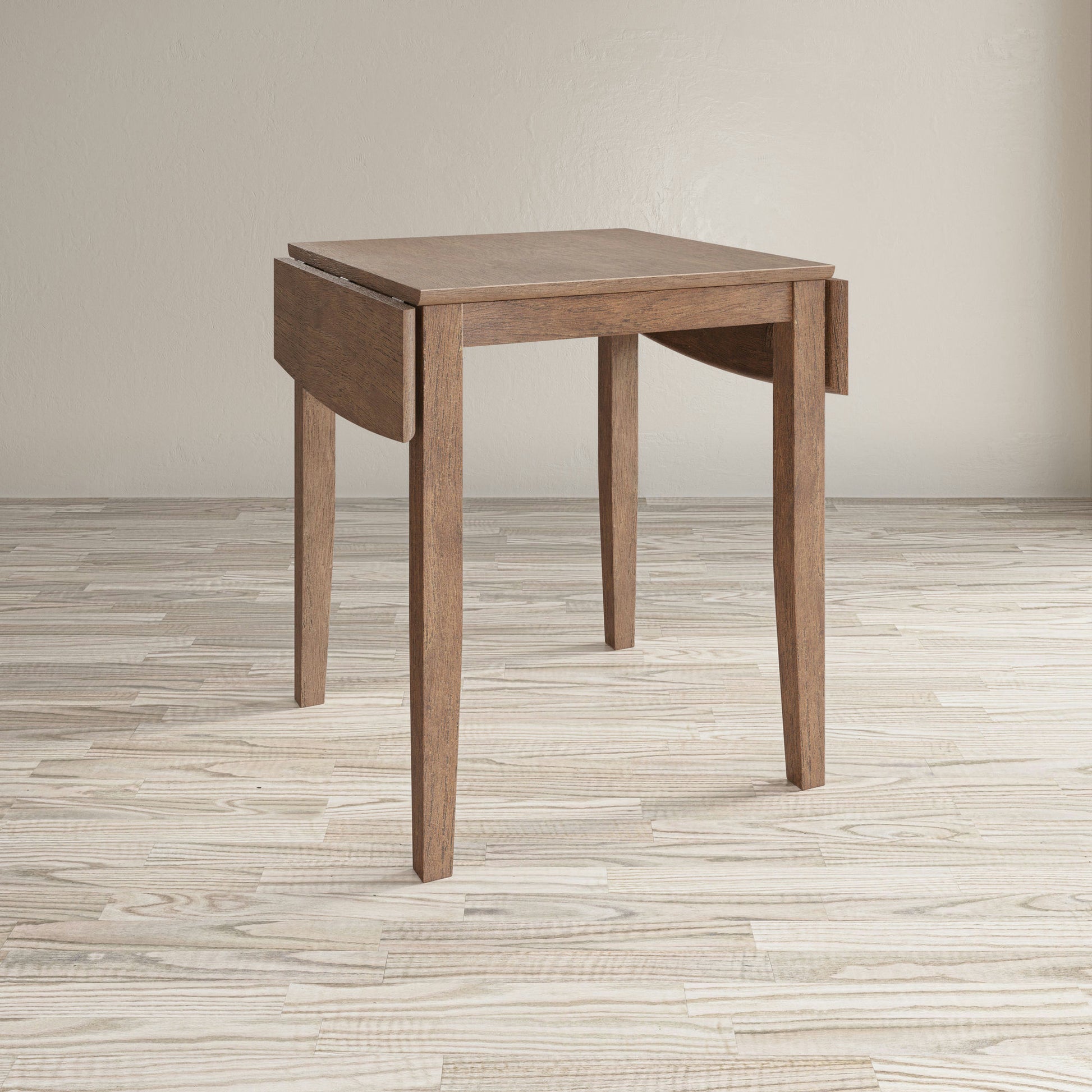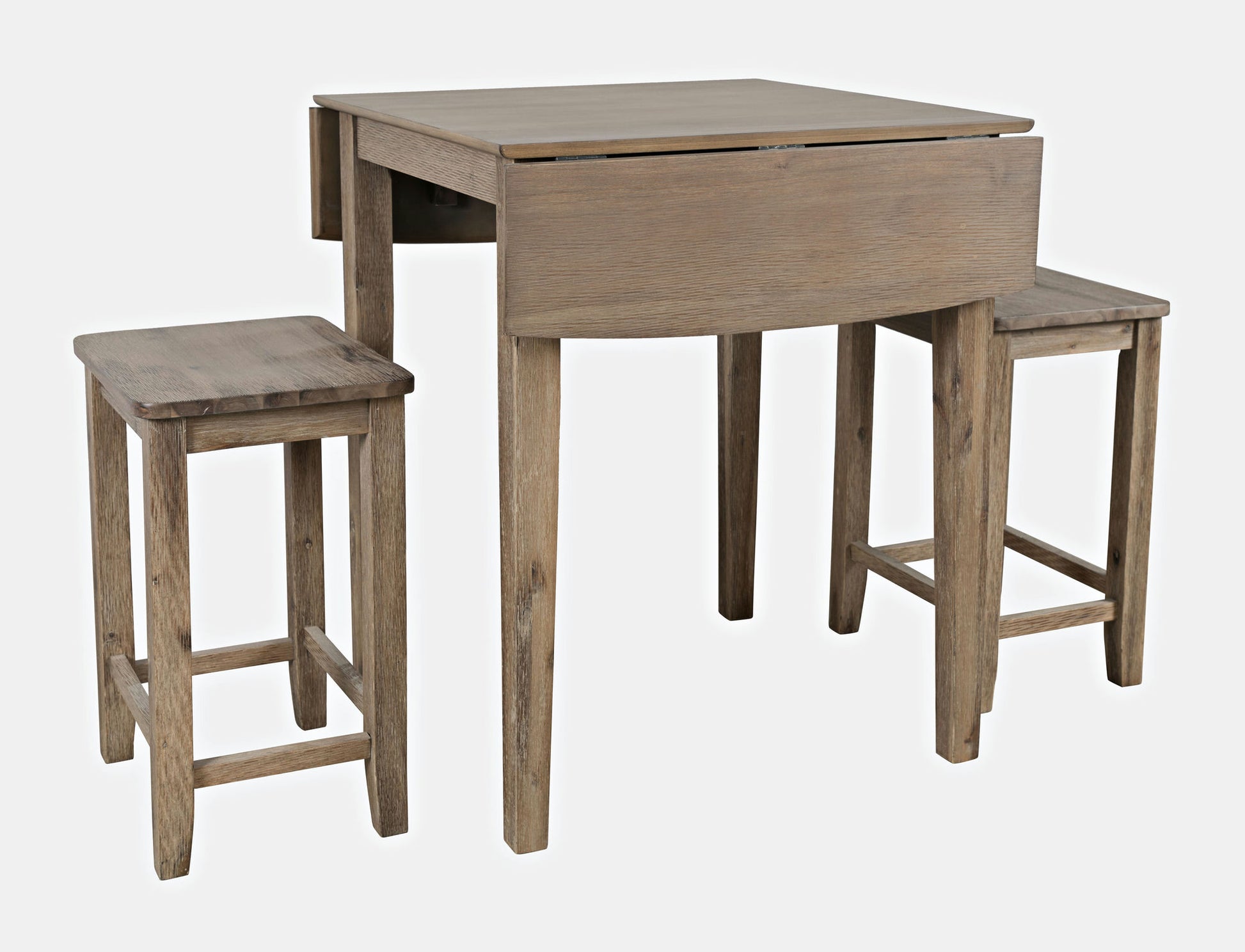 Classic American design with a modern style, the Eastern Tides collection invites a casual feel to your kitchen or dining room with a blended wire brush finish that everyone will love. This counter height drop-leaf table and stool set measures 48" x 30" x 36"H when extended but can easily fit into compact spaces by folding down the sides to make the size a more manageable 30" x 30" x 36"H. Available in both Brushed White and Brushed Bisque finishes, this table will make the perfect addition to your home.