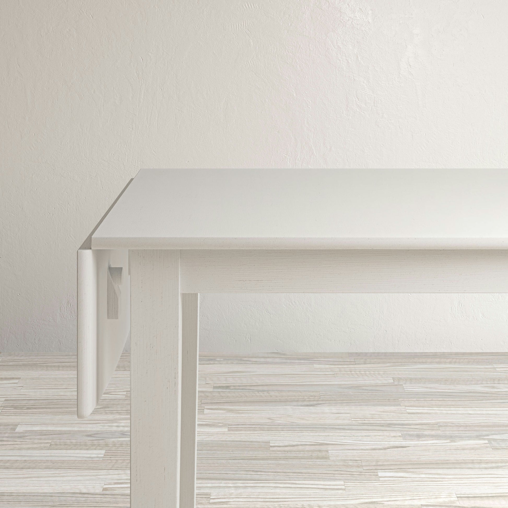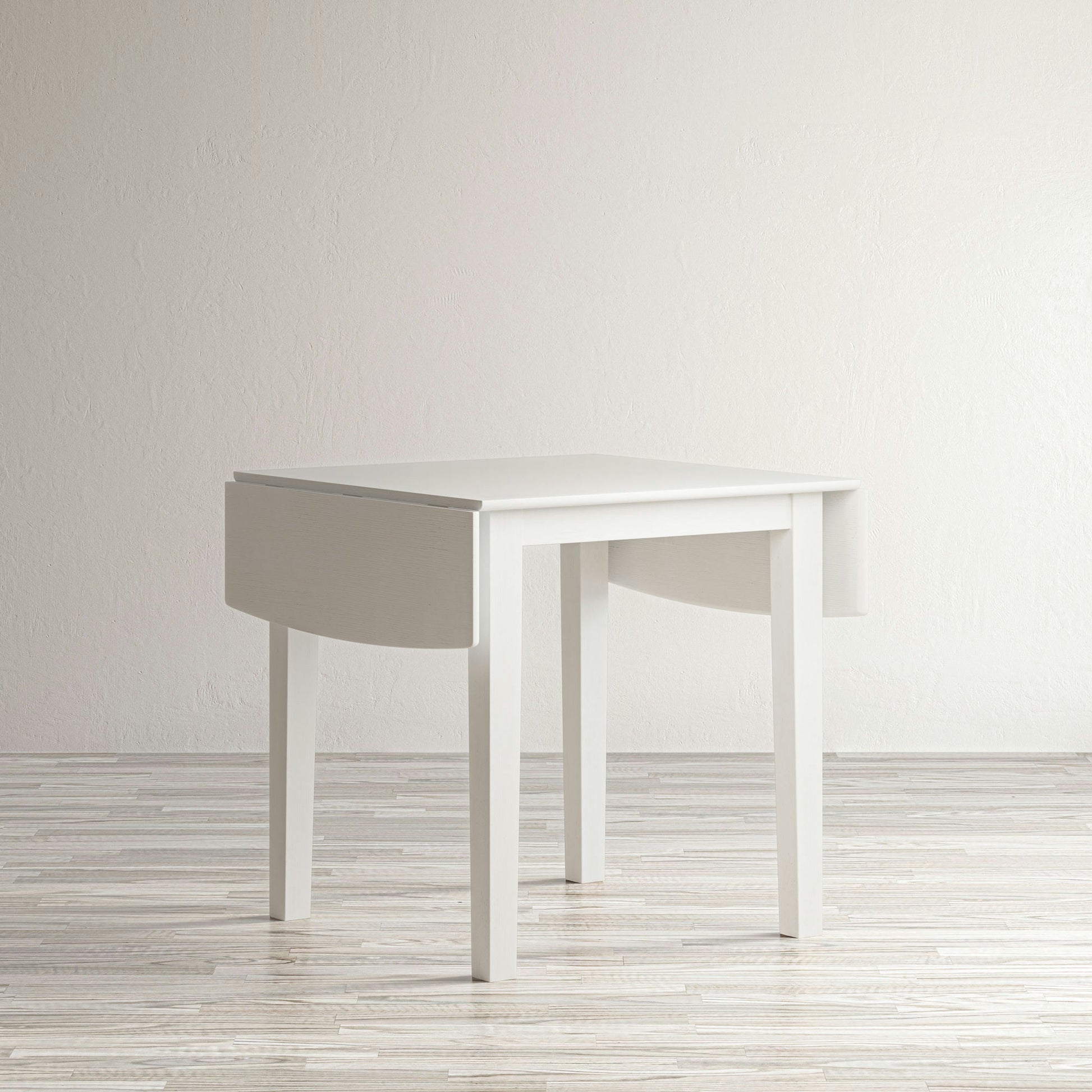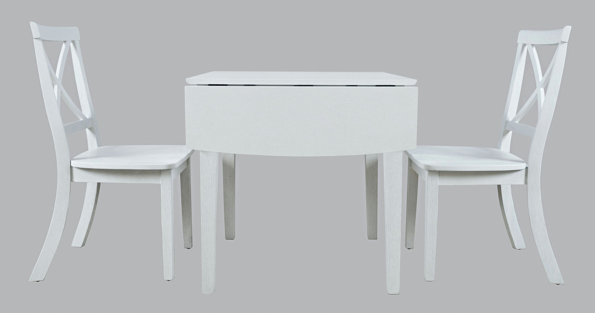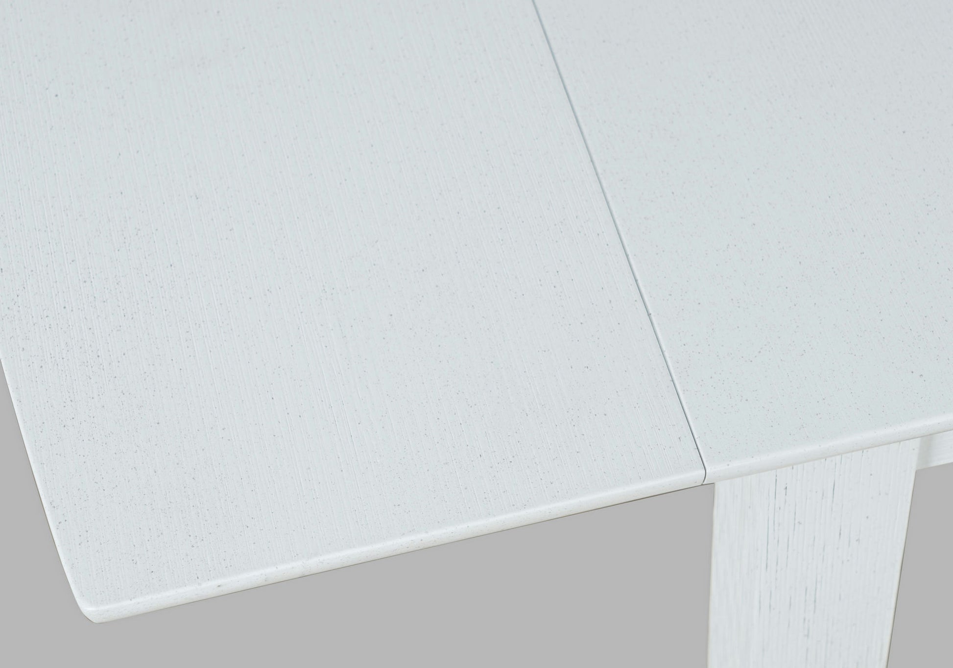 Classic American design with a modern style, the Eastern Tides collection invites a casual feel to your kitchen or dining room with a blended wire brush finish that everyone will love. This drop-leaf dining table and chair set measures 48" x 30" x 30"H when extended but can easily fit into compact spaces by folding down the sides to make the size a more manageable 30" x 30" x 30"H. Available in both Brushed White and Brushed Bisque finishes, this table will make the perfect addition to your home.