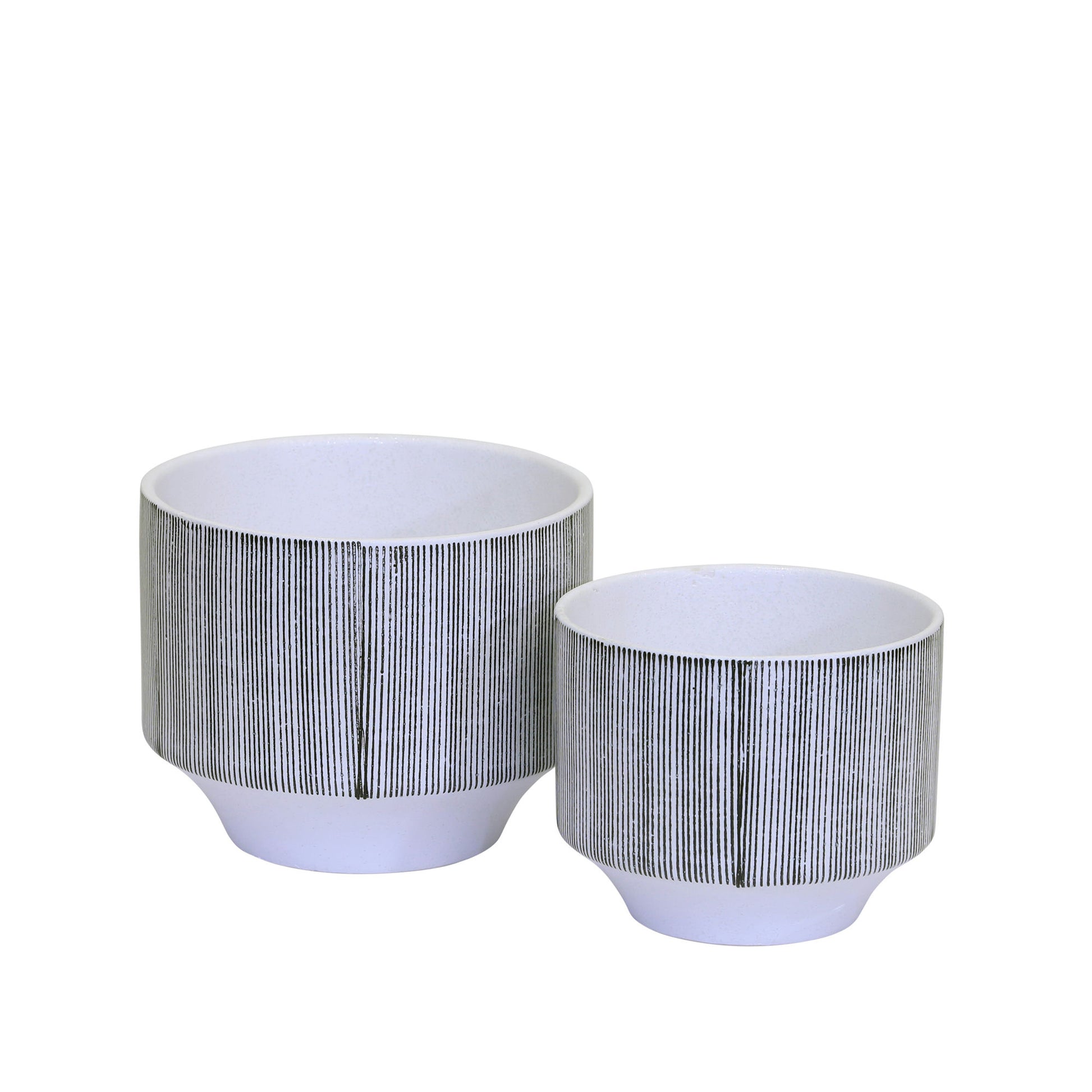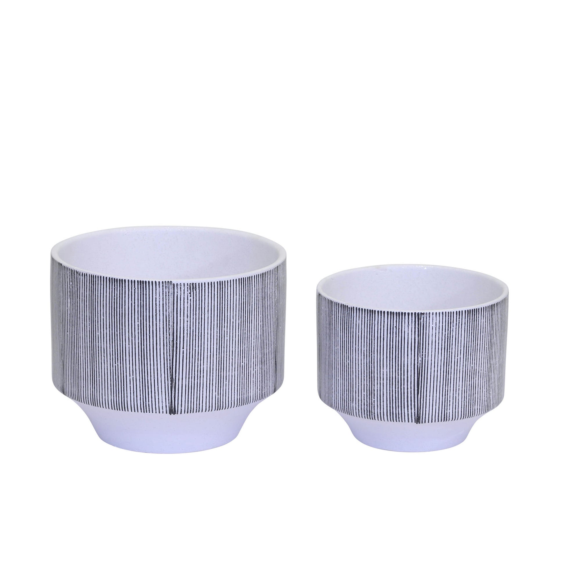 Ec, S/2 Ceramic Planters 8.5/6.5"gray Stripe