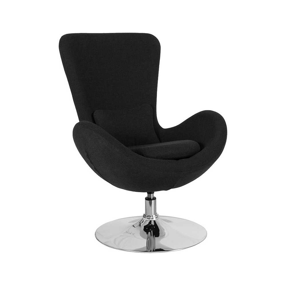 This high back upholstered reception chair will add an attractive detail to your lounge or office. This chair is highlighted with an outer lumbar pillow that provides lower back support and a swivel seat. Curved wing sides provide a stylish arm detail. The round chrome base features a plastic ring to protect flooring. Guests will be charmed at the contemporary seating with the added comfort. Please your guests with stylish seating that is made for comfort. [CH-162430-BK-FAB-GG]