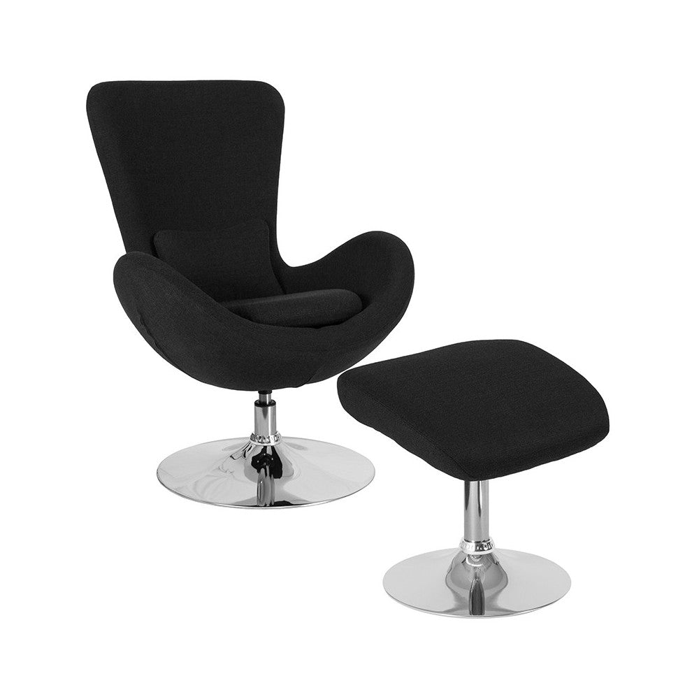 Egg Series Black Fabric Side Reception Chair with Ottoman