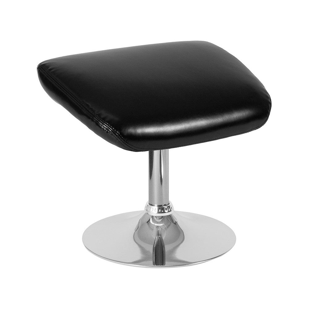 Relax in style with the Egg Series LeatherSoft Ottoman. This gently contoured ottoman provides comfort and contemporary style. It is upholstered with vibrant colored LeatherSoft and foam filled for added comfort. The round, metal base is finished in shiny chrome, adding to the contemporary look. A plastic ring under the base protects your floors. Pair with the padded lounge Egg Chair to complete the look of your living room. Put up your feet and unwind with this distinct ottoman. [CH-162430-O-BK-LEA-GG]