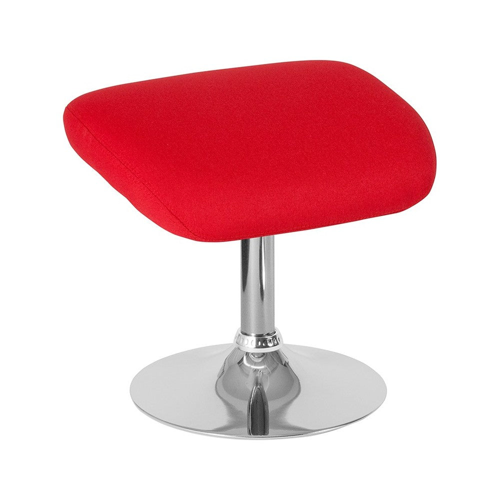 Relax in style with the Egg Series Fabric Ottoman. This gently contoured ottoman provides comfort and contemporary style. It is upholstered with vibrant colored fabric, and foam filled for added comfort. The round, metal base is finished in shiny chrome, adding to the contemporary look. A plastic ring under the base protects your floors. Pair with the padded lounge Egg Chair to complete the look of your living room. Put up your feet and unwind with this distinct ottoman. [CH-162430-O-RED-FAB-GG]
