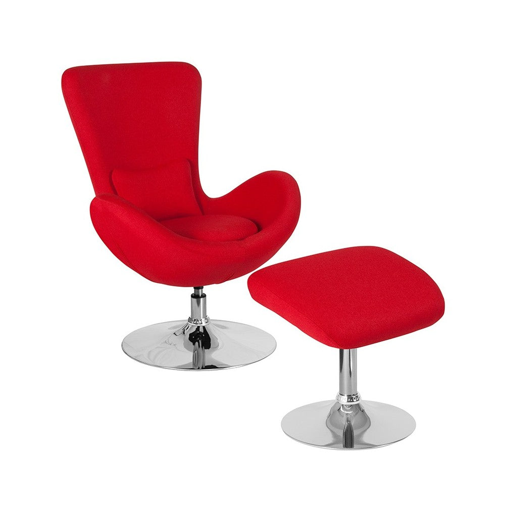 Egg Series Red Fabric Side Reception Chair with Ottoman