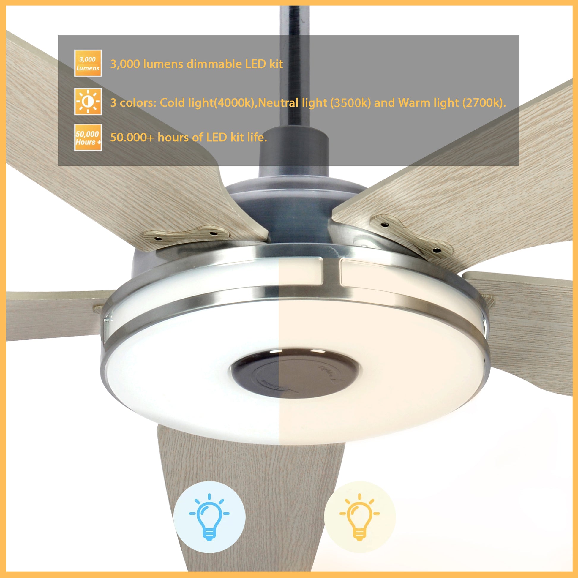 Elira 52-Inch Indoor/Outdoor Smart Ceiling Fan - Light Amber