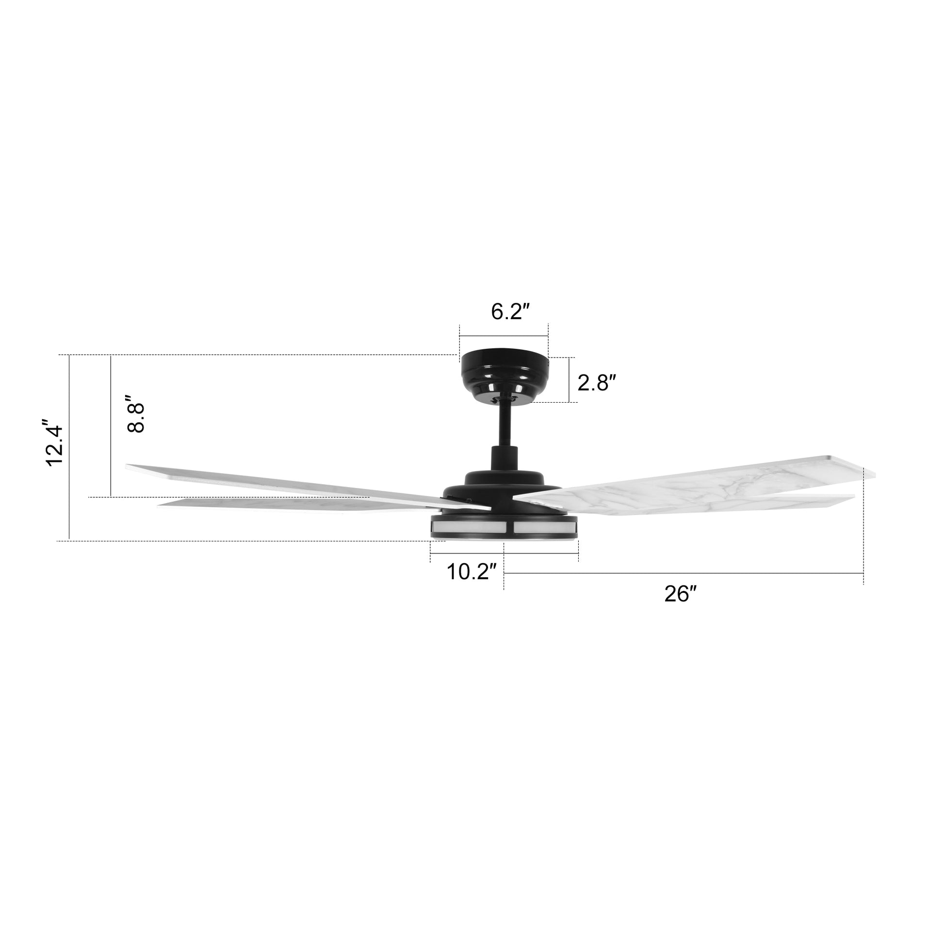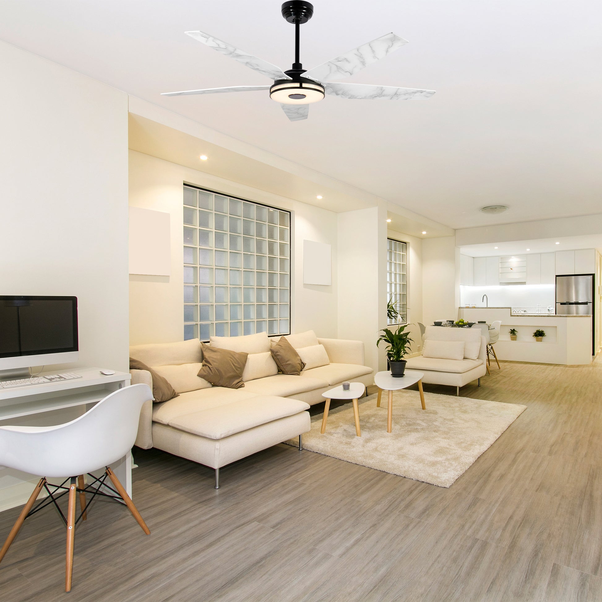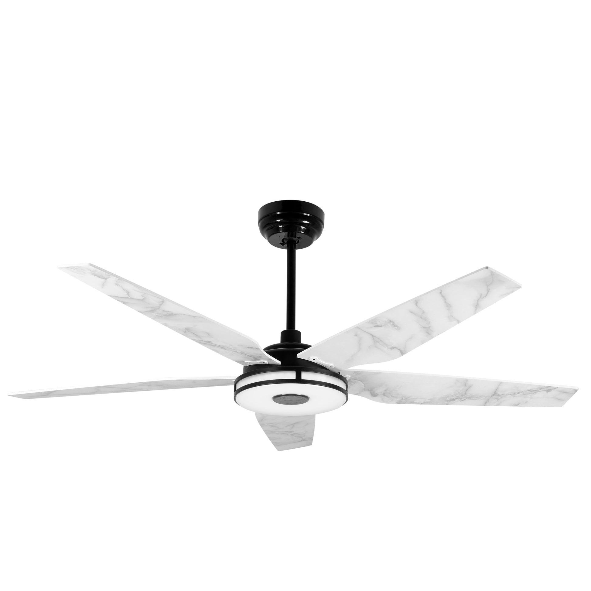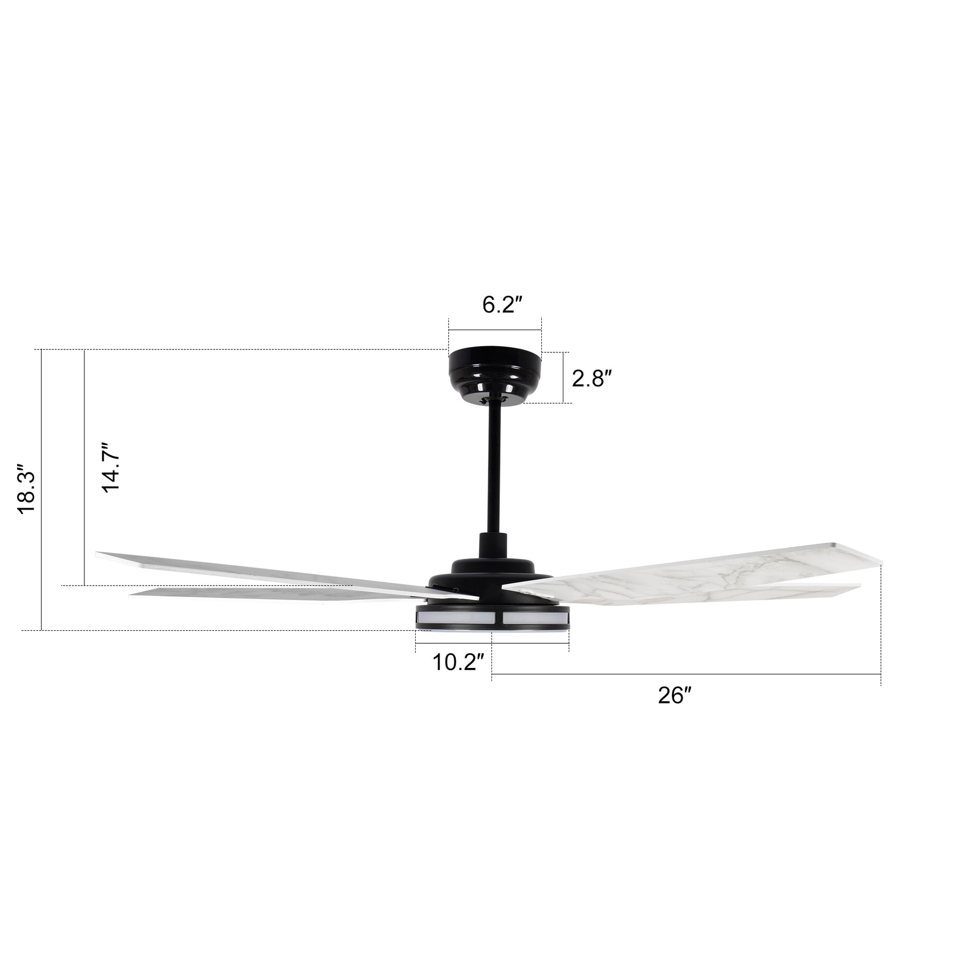 Elira 52-Inch Indoor/Outdoor Smart Ceiling Fan - Matte Black/White Marble