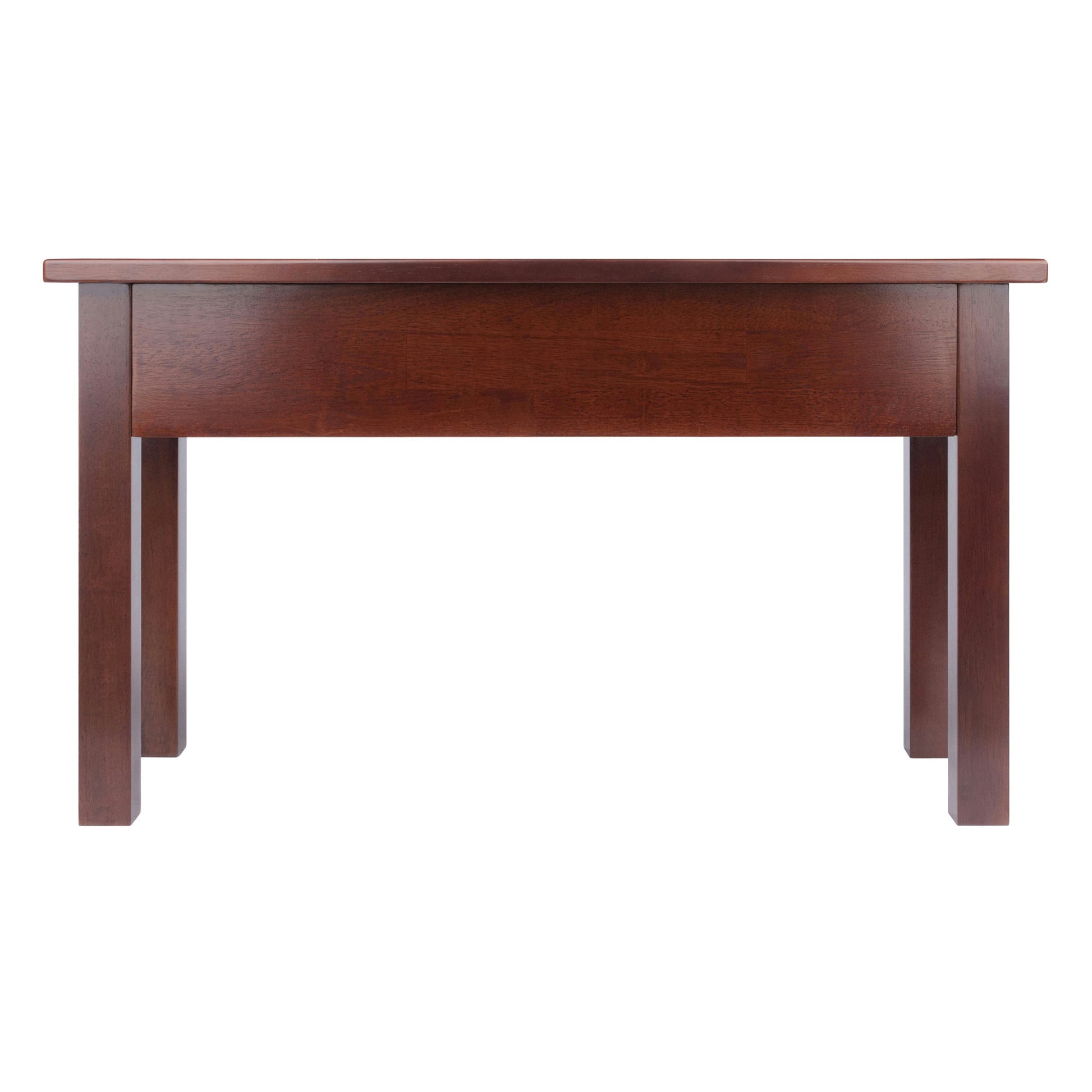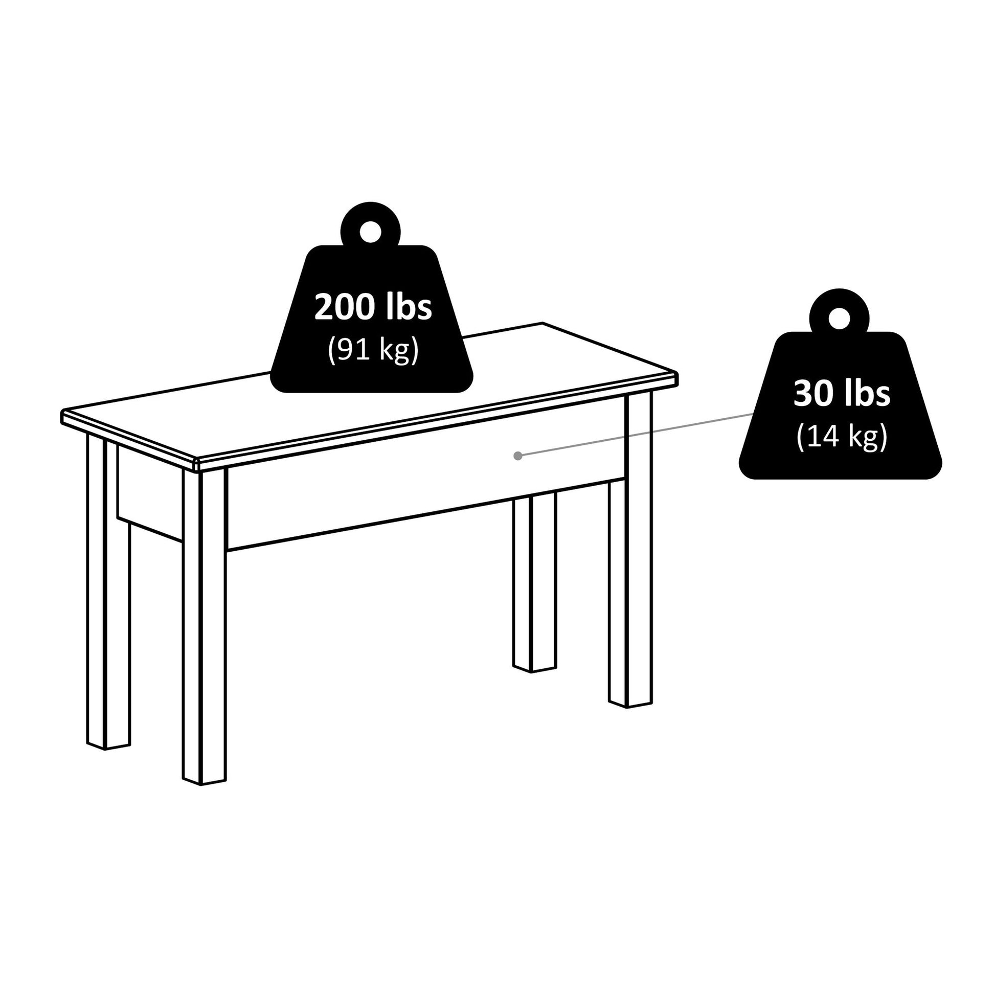 Use the Emmett Bench in a entryway, mudroom, or pull it up to a desk or table. The seat opens with hinges to offer storage for anything from books and magazines to scarves and mittens. Its classic styling is designed to harmonize with any decor. Constructed with solid and composite wood and finished in a warm Walnut.