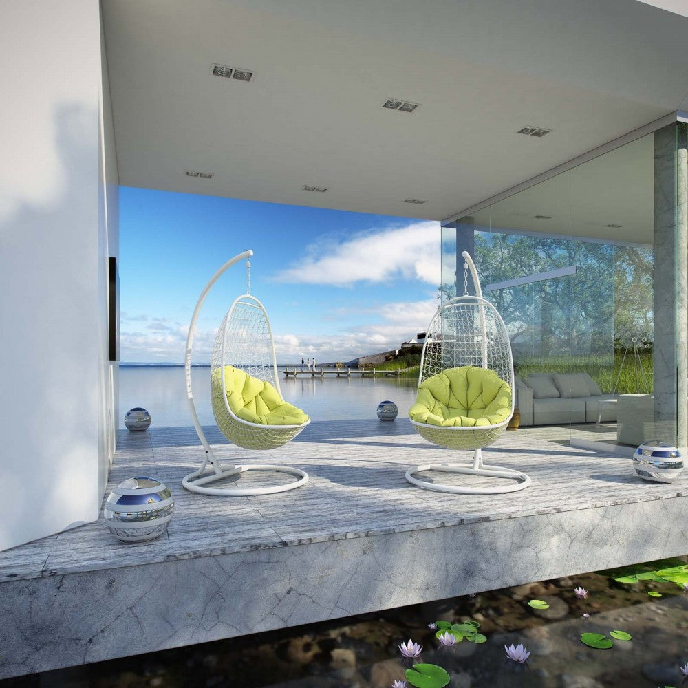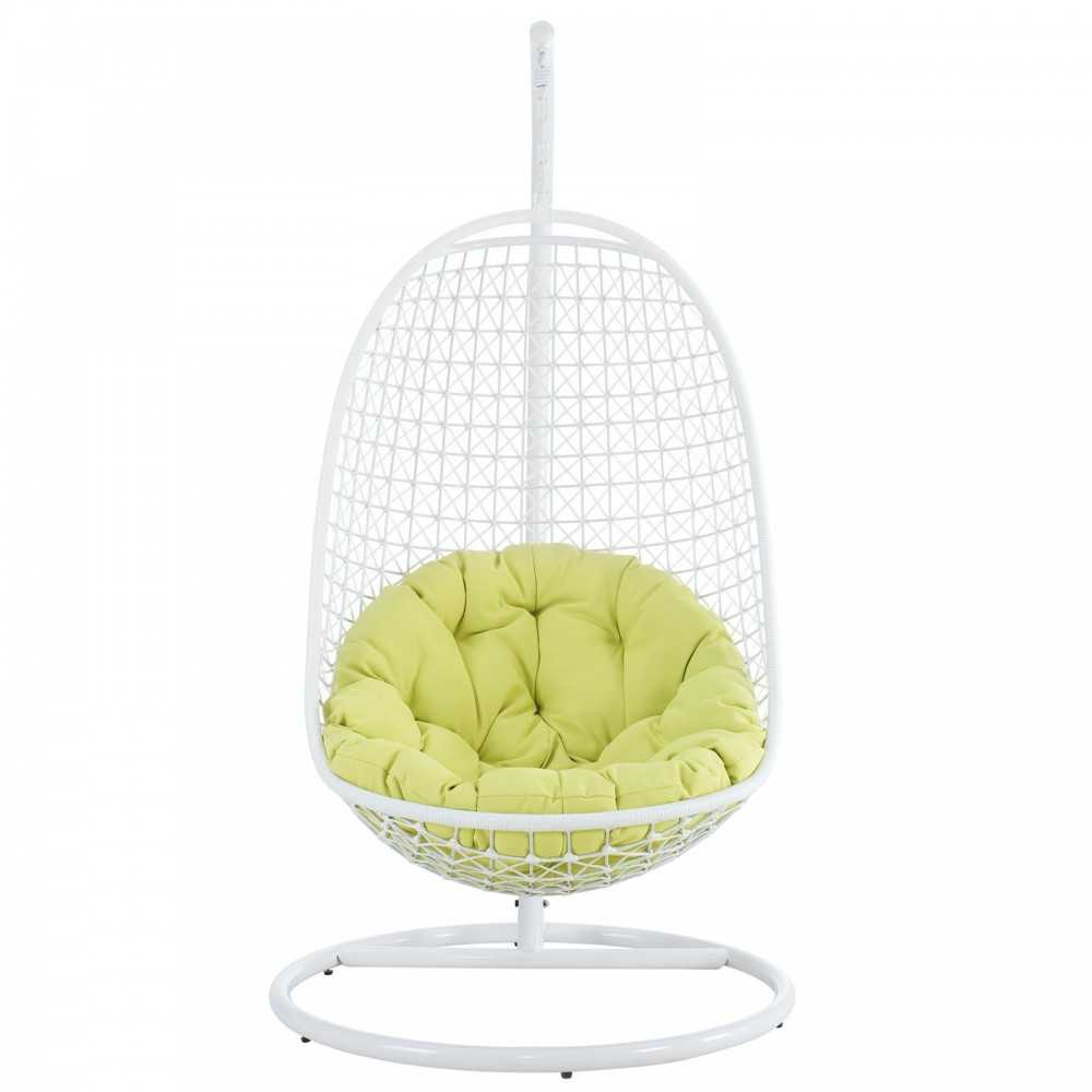 Sift through the sands of silent contemplation with this fanciful outdoor swing chair. Encounter Hanging Swing Chair is your guide through periods of growth and change. With a sturdy outdoor white metal stand and plush fluorescent green seating, set your sights on an awakened sense of confidence while safely ensconced in a patio swing chair with an elevated vantage point.