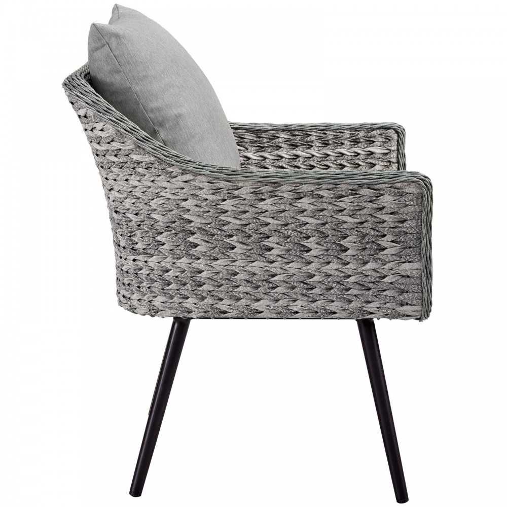 Gather family and friends to indulge in good weather and a premium lounge experience with the Endeavor Outdoor Patio Collection. Sporting a stylish contemporary modern look, Endeavor Patio Arm Chair features waterproof, black powder-coated aluminum legs and non-marking foot caps. A designer gray-on-gray tone synthetic rattan weave perfect for upgrading a variety of balcony, garden, backyard, and patio decors make Endeavor Outdoor Arm Chair a vital outdoor decor piece. The spacious profile of this wicker rattan arm chair and all-weather cushions offer long-lasting comfort when relaxing or entertaining.