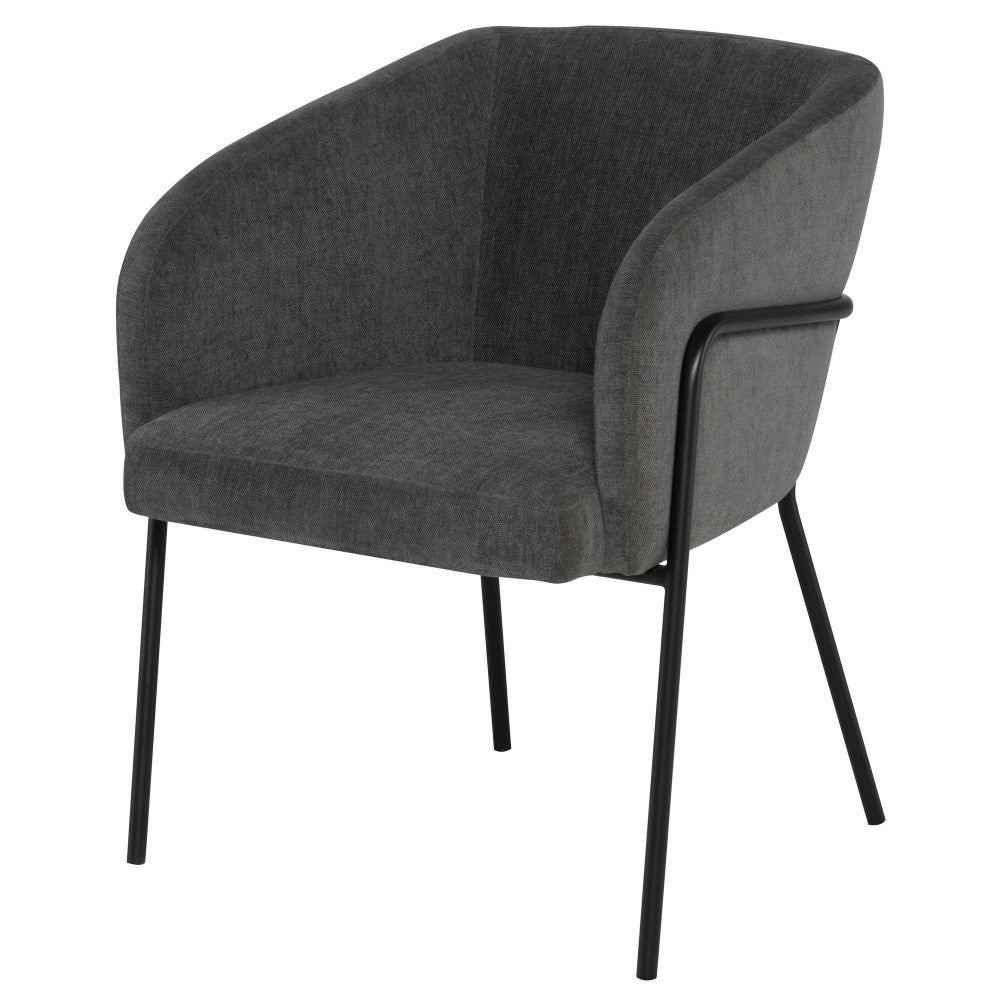 Classic matte black legs create a base and supporting backrest for the Estella dining chair. Its understated silhouette is wrapped in a smooth and silky fabric, bringing an elevated finish to the chair. Perfect for relaxing comfortably around a refined dining table.