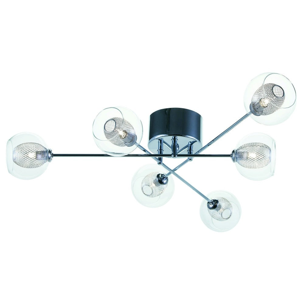 The Estelle 6 ceiling mount represents an elegant linear modernity. Featuring six circular glass globes surrounding sparkling pin lights wrapped in a delicate silver wire cage the Estelle casts a rich, textured light with an elegant simplicity.