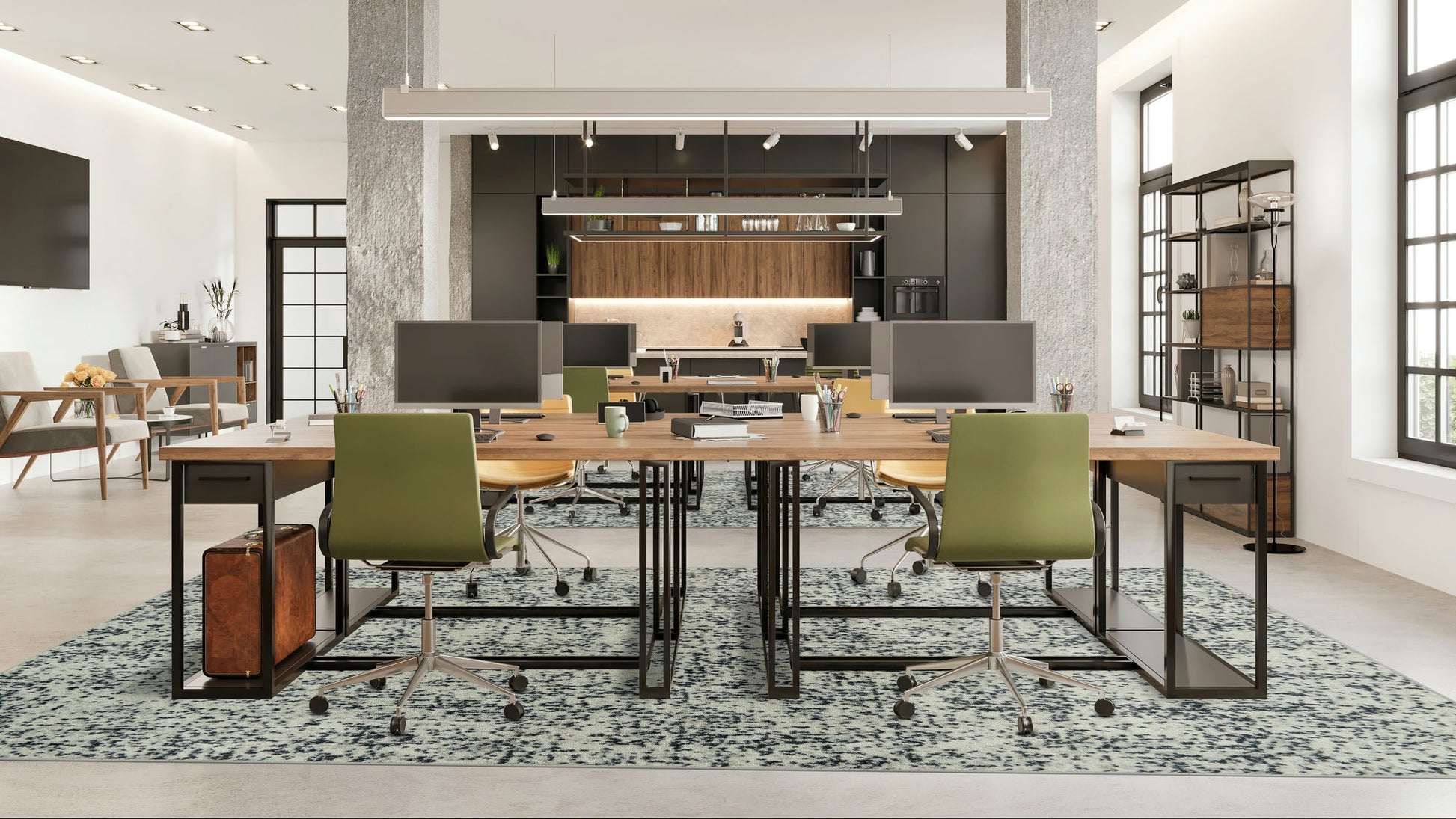 Etched In Stone is an eye-catching and functional area rug for distinctive work-from-anywhere interiors. Designed to make a statement in productive, collaborative, and social spaces, this rug adds personal style, showcases corporate culture, and will transform the modern office into an inspirational, rewarding workplace.