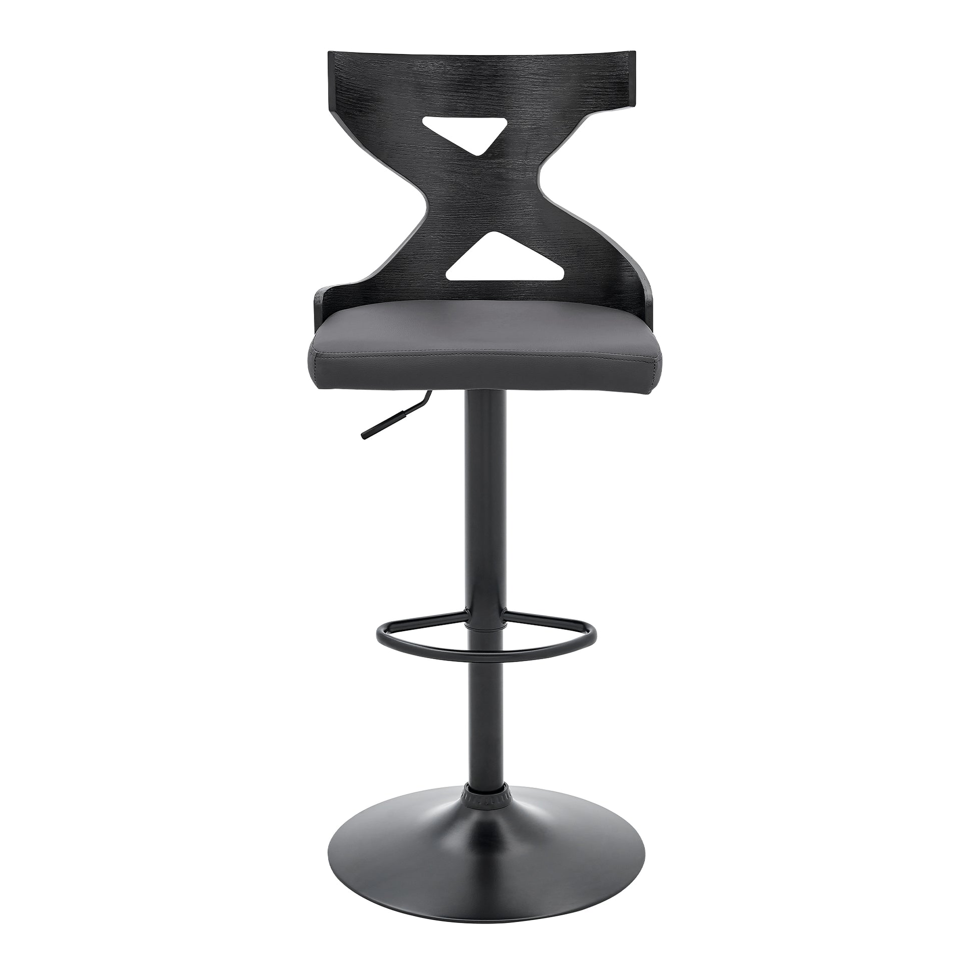 The Etienne Gray Faux Leather and Black Base Adjustable Swivel Barstool from Armen Living is the perfect barstool to invite into your beautiful home. The ornate x-designed back is unique and original, yet comfortable and reliable. The plush foam-padded cushion is perfect for long conversations and entertaining guests as it keeps them comfortable for as long as they are seated. The Etinne features a full 360-degree swivel function that increases the mobility of your stool. The adjustable gas lift can take you from counter height to bar height in an instant with ease. The wide metal base is not only a great looking accent but practical as well - keeping you stable and secure as long as you're seated.