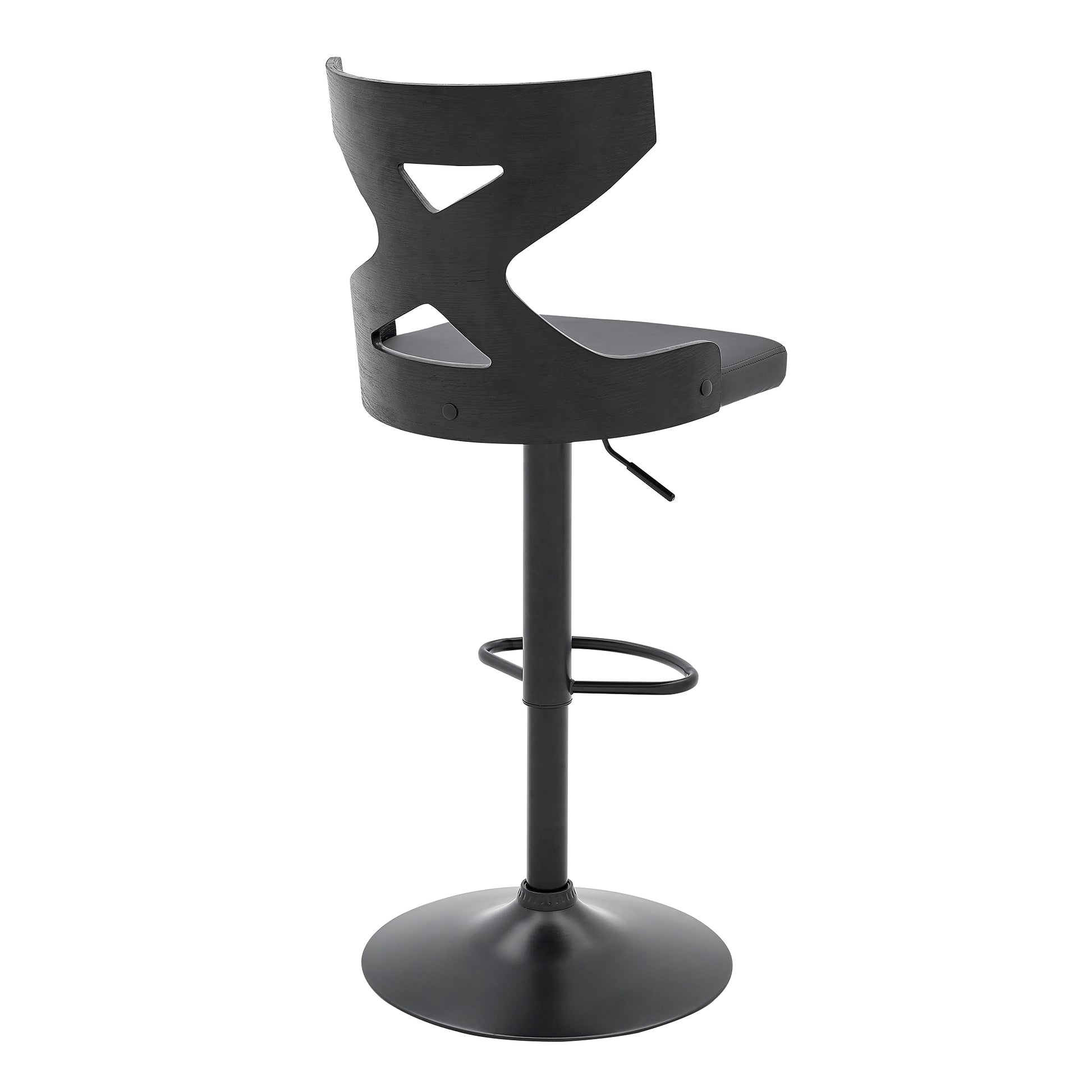 Etienne Adjustable Swivel Gray Faux Leather and Black Metal Bar Stool