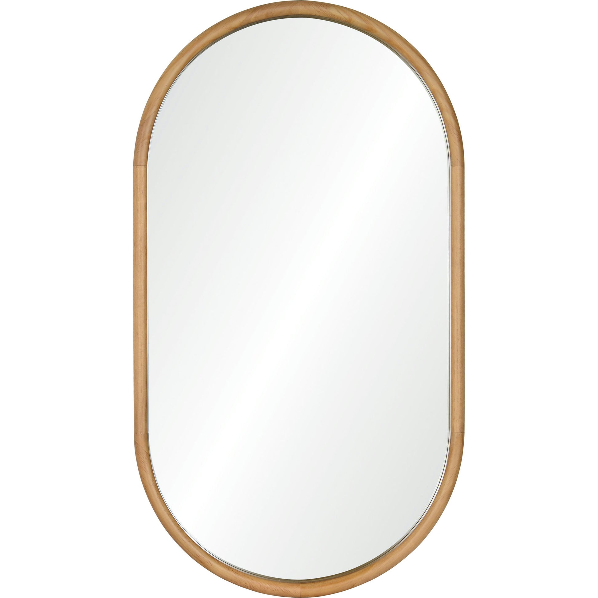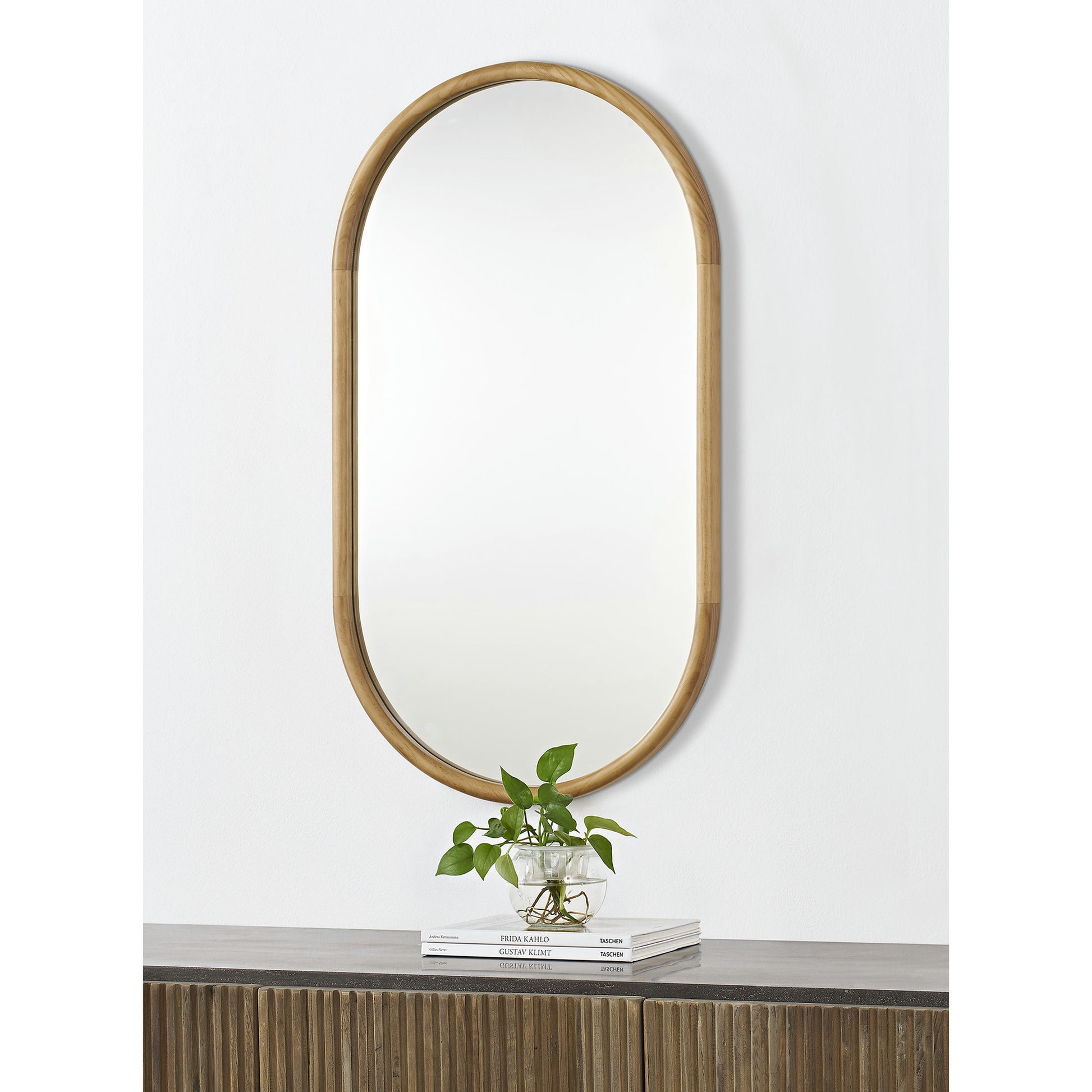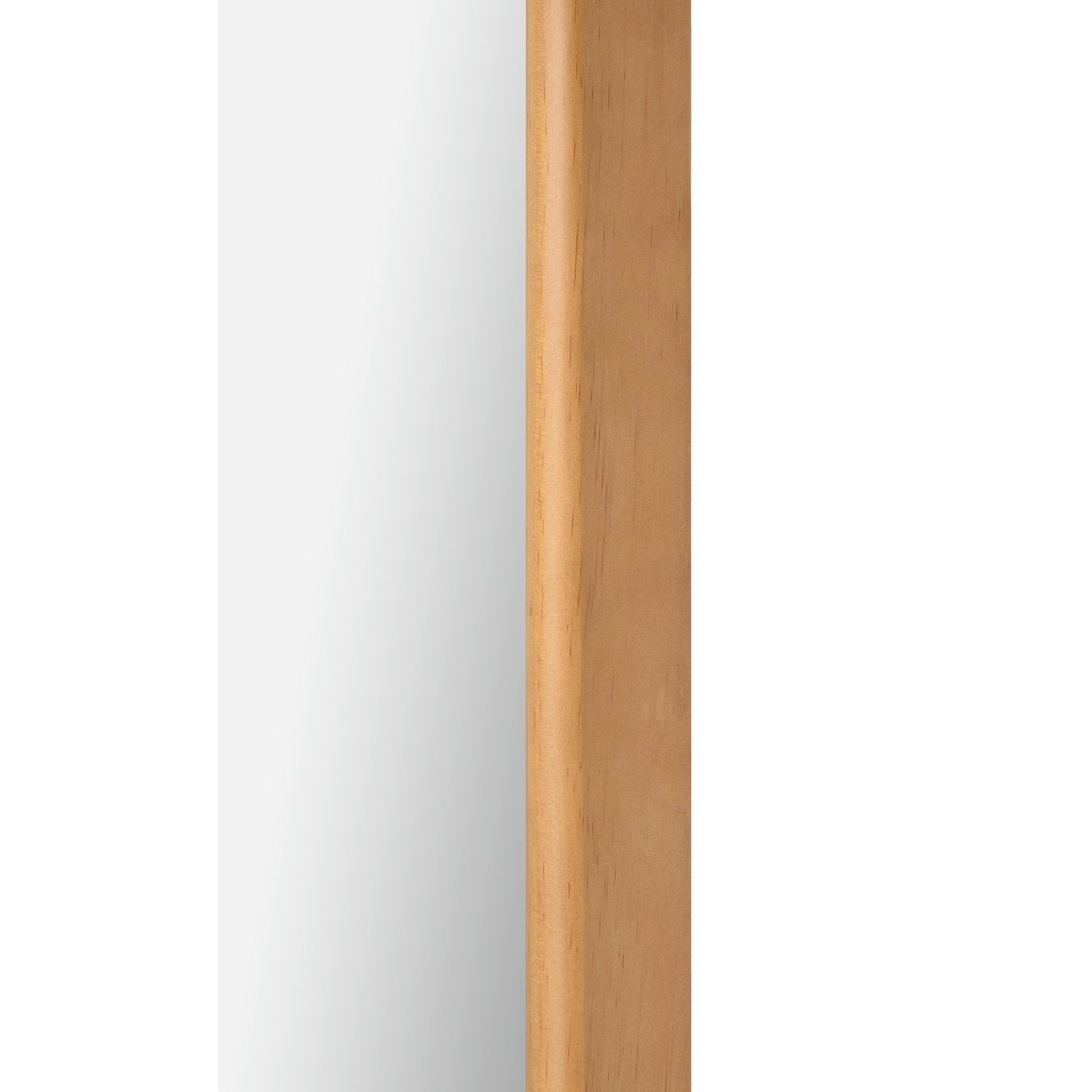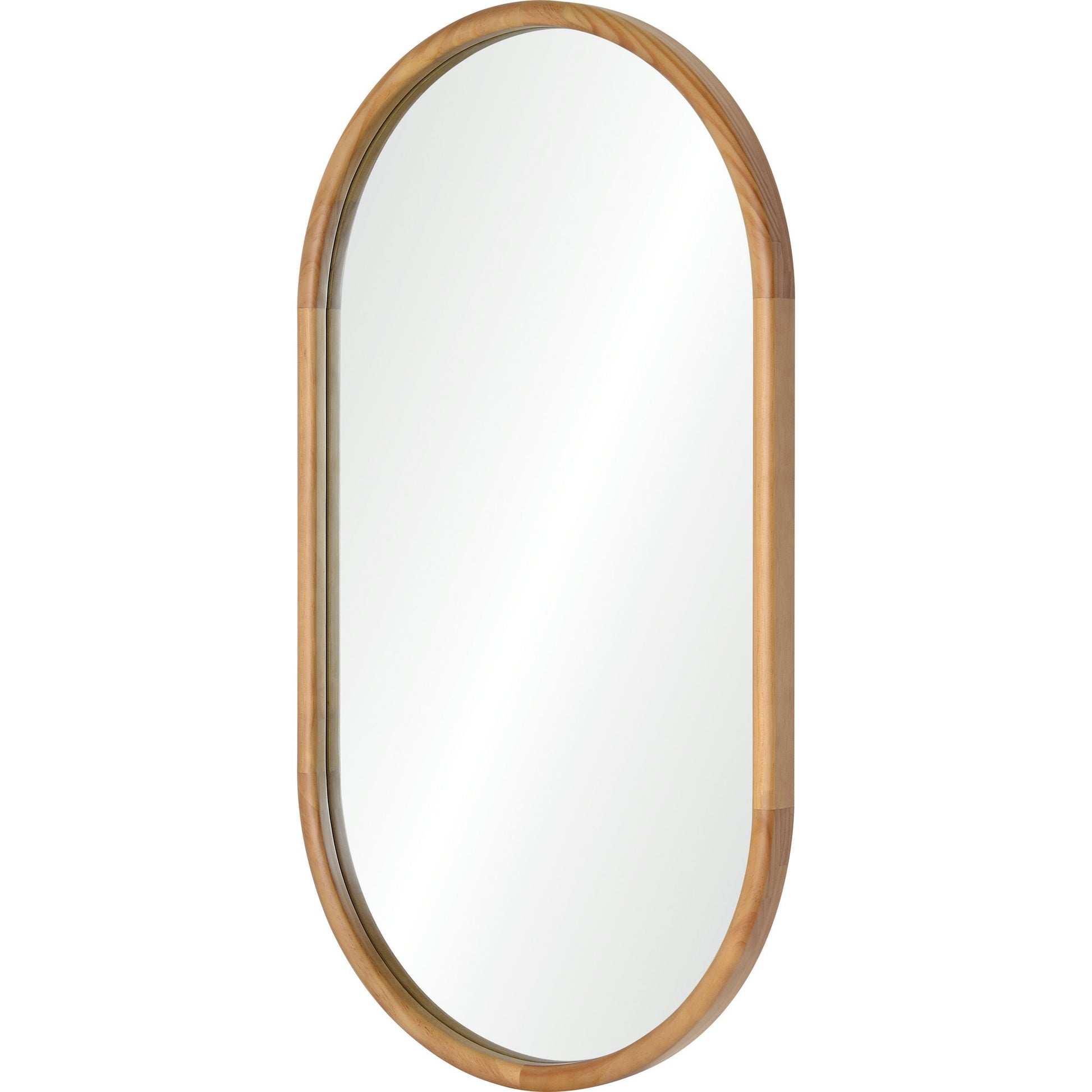 At once classic and contemporary, this mirror's pine wood frame holds a traditional quality while the unique shape feels artistic and fresh. At 20 inches in width and 36 in height, it provides function in the bedroom or entryway, capturing a subject and its surroundings. Fit for a vertical or horizontal arrangement, the shape has a new appeal with each option.