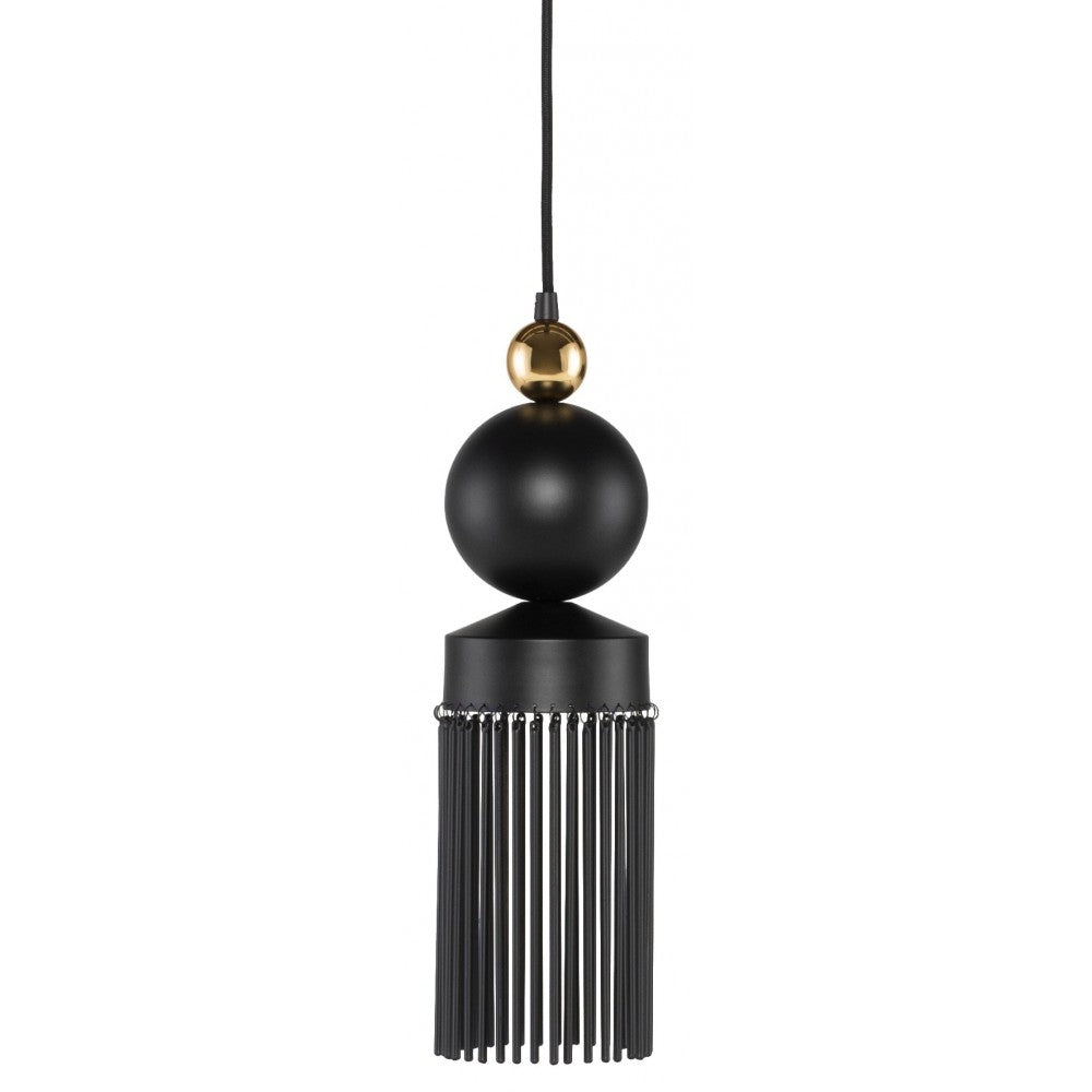 Artfully designed, the Fabiola pendant resembles an eye-catching piece of jewelry. A striking gold sphere rests on a larger ball, while delicate matte black tassels enclose the lightbulb. This poised design is perfect for wherever you're looking to make a statement.