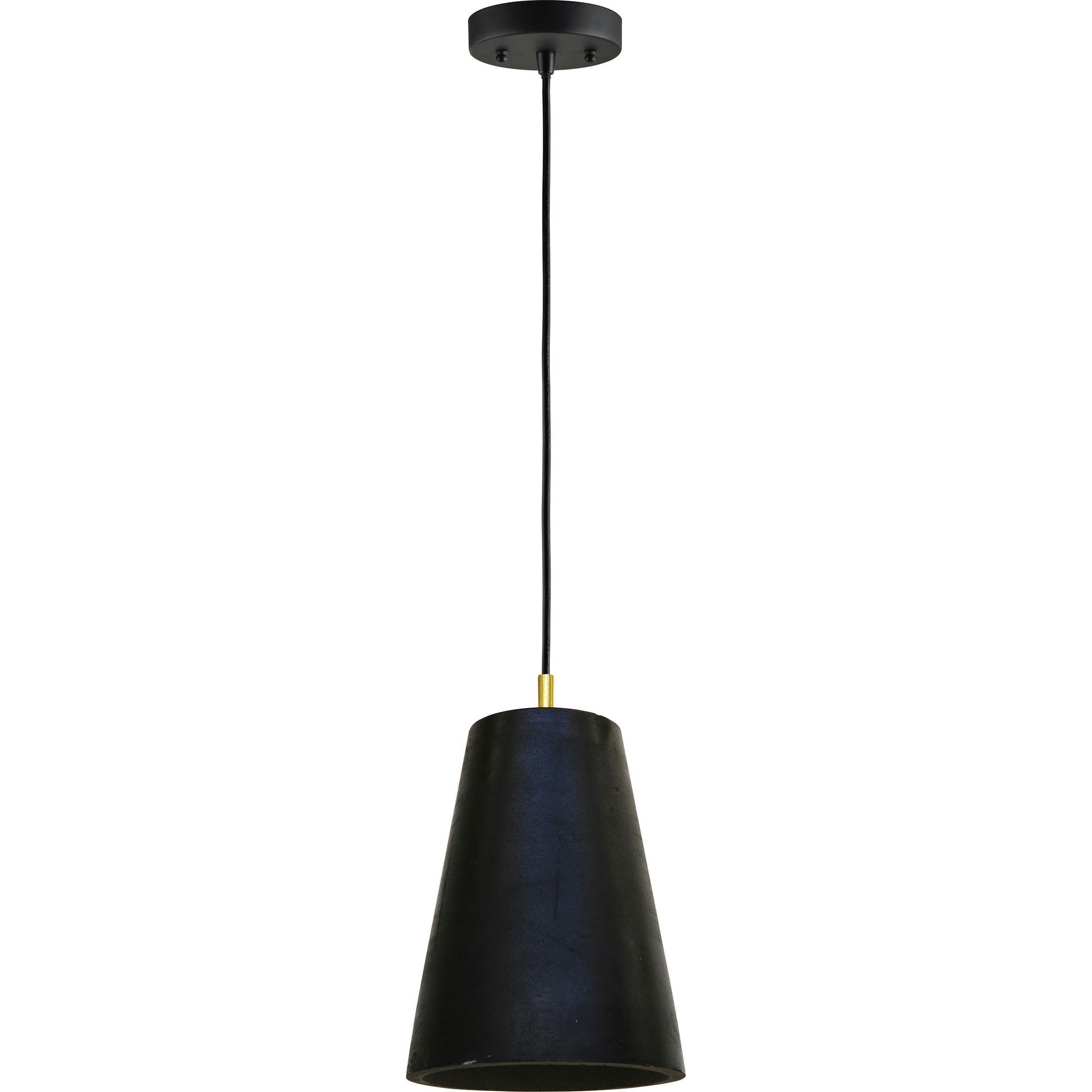 Black waxed concrete brings raw refinement to the conical shape of this modern ceiling pendant light. The smooth finish of the shade is the perfect complement to polished brass hardware and a black cord. Suspend this streamlined light for maximum illumination over a kitchen island or countertop.