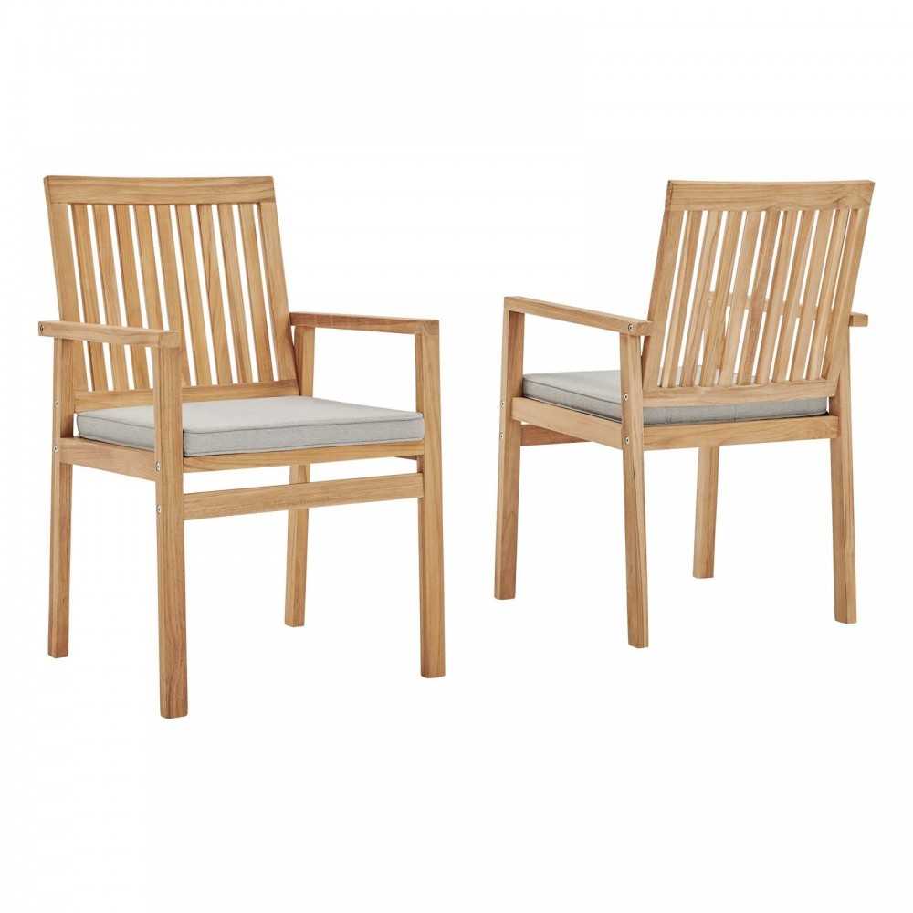 Update your outdoor decor with the Farmstay Outdoor Patio Wood Dining Armchair Set of 2. Comprised of FSC certified solid Teak wood, these outdoor chairs are a refreshing addition to your patio dining furniture. Crisp lines form this smoothly designed patio chair set with slatted seat and back that creates breathable airflow. The densely padded all-weather cushions come with a durable machine washable cover, complete with ribbons to secure the cushion onto the seat base. Chair Weight Capacity: 331 lbs.