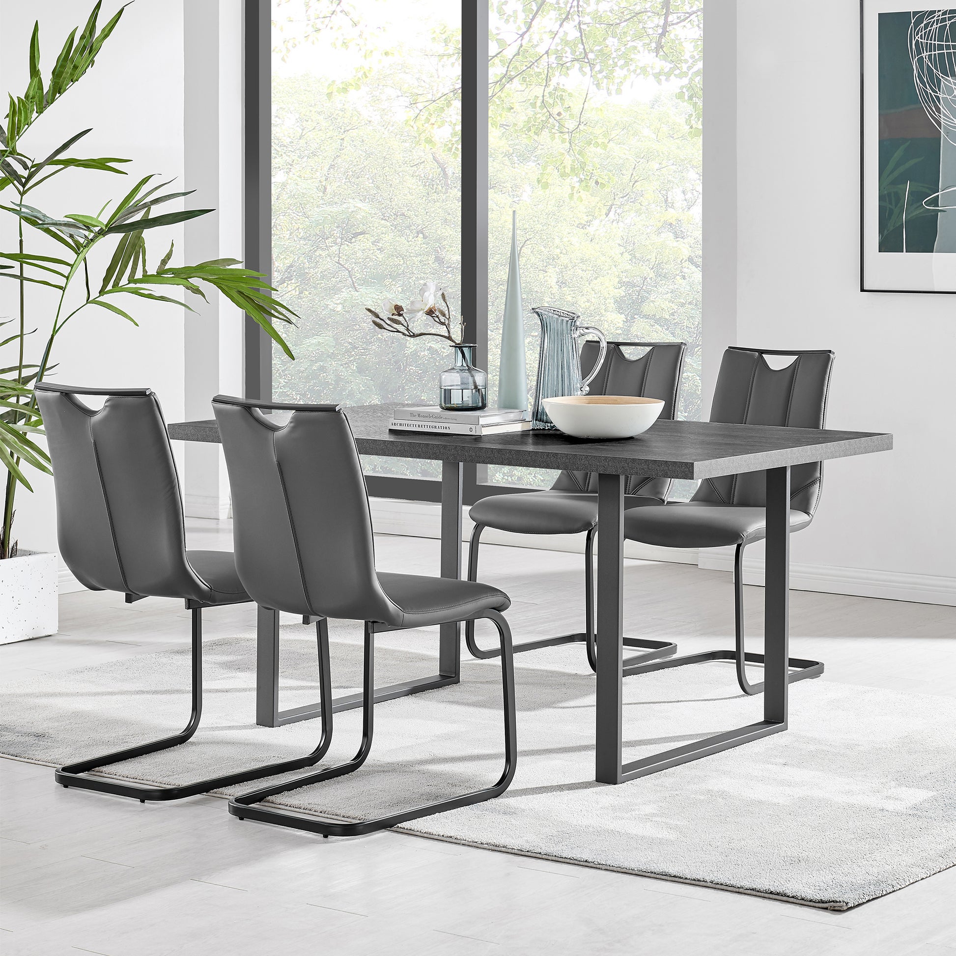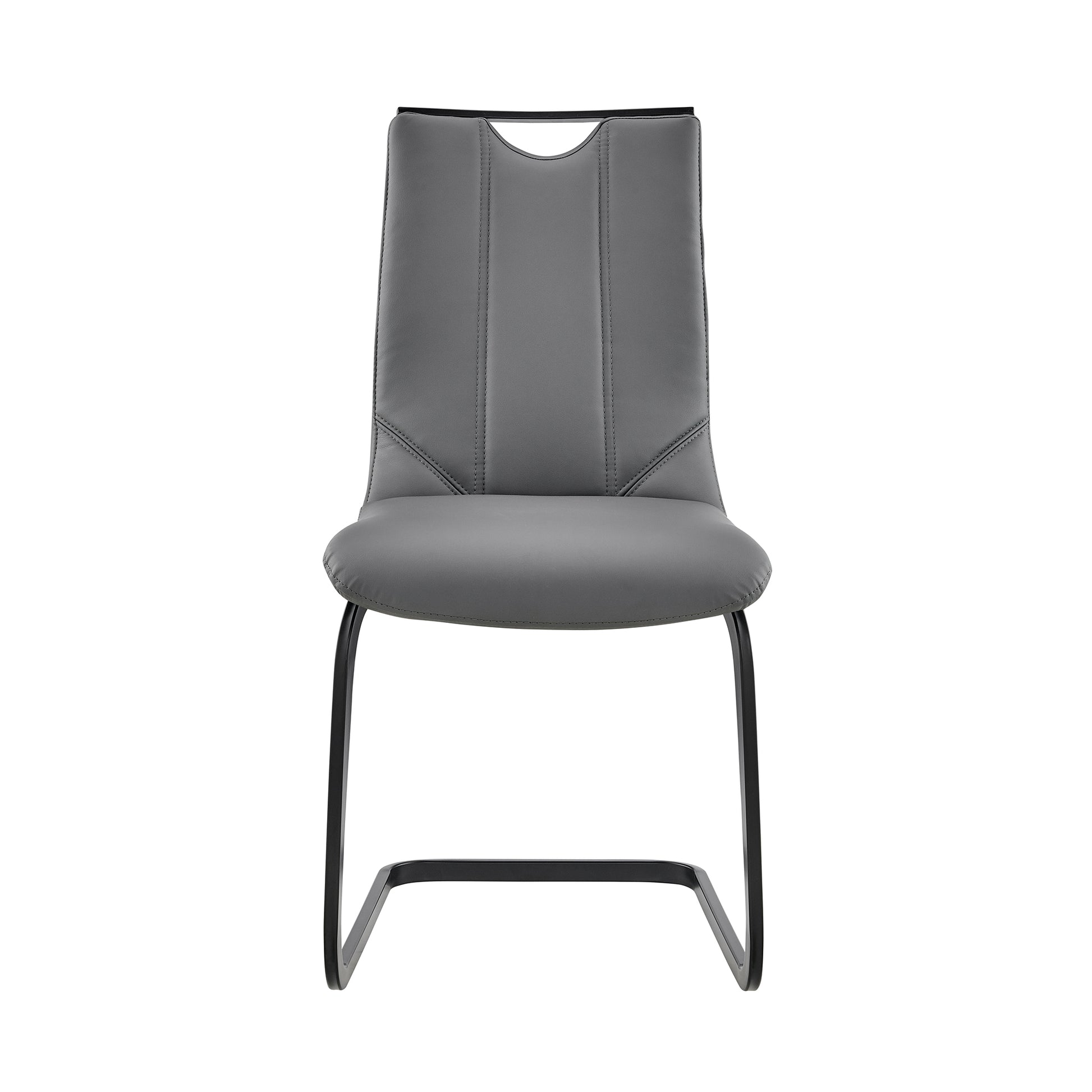 The Fenton and Pacific 5 Dining Set with Gray Faux Leather from Armen Living is the best new addition to bring into your beautiful home. The ergonomic seat back is designed with your comfort and posture in mind - no back pain! The sled leg design offers incredible stability and safety. The Pacific features a convenient handle at the top of the seatback, which makes carrying from room to room a breeze! This wonderful chair features a sturdy metal frame that assures dependability and will give you years of enjoyment. The thick tabletop of the Fenton is wide and sturdy - allowing you to entertain guests with ample space and never having to worry about the stability of the table. The refined geometric shapes displayed throughout this piece of furniture will offer your home a truly sophisticated look.