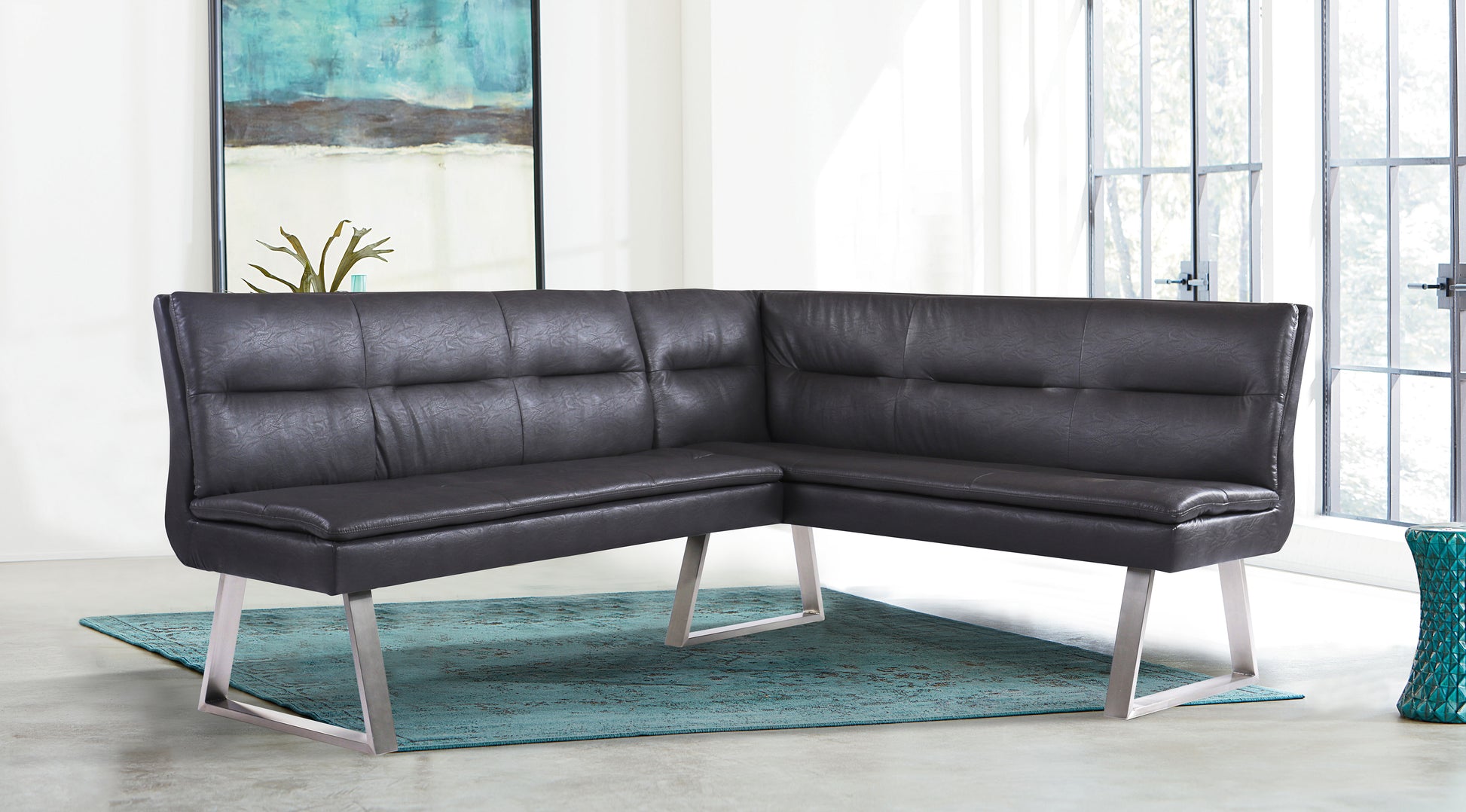 - Fenton Modern Corner Kitchen Nook In Brushed Stainless Steel Finish And Gray Faux Leather