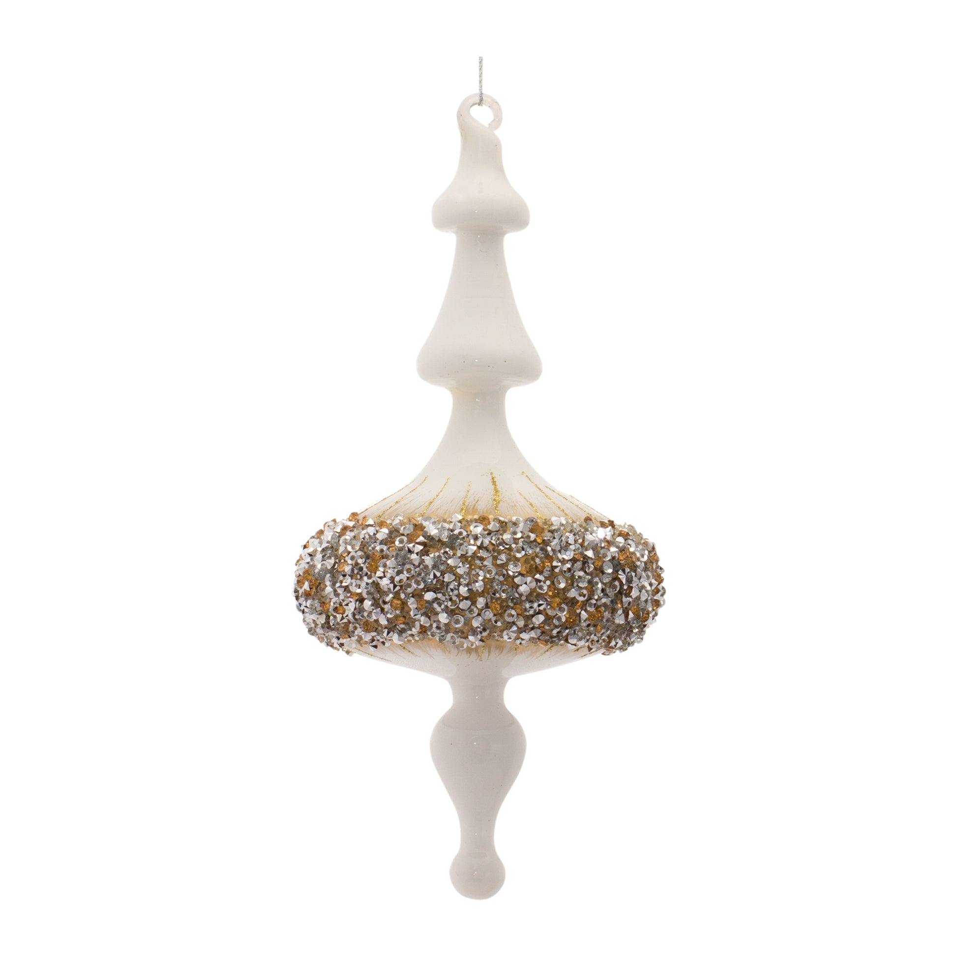 Adorn your Christmas Tree with this beautiful set of Finial Drop Ornaments. Featuring two assorted designs, the traditional drop and finial ornament design paired with chic white and gold tones with beaded accents makes this set the perfect addition to your holiday tree decor. The pieces can be used as gifts for friends to cherish, or you can display the set on your own Christmas tree and enjoy them for years to come.