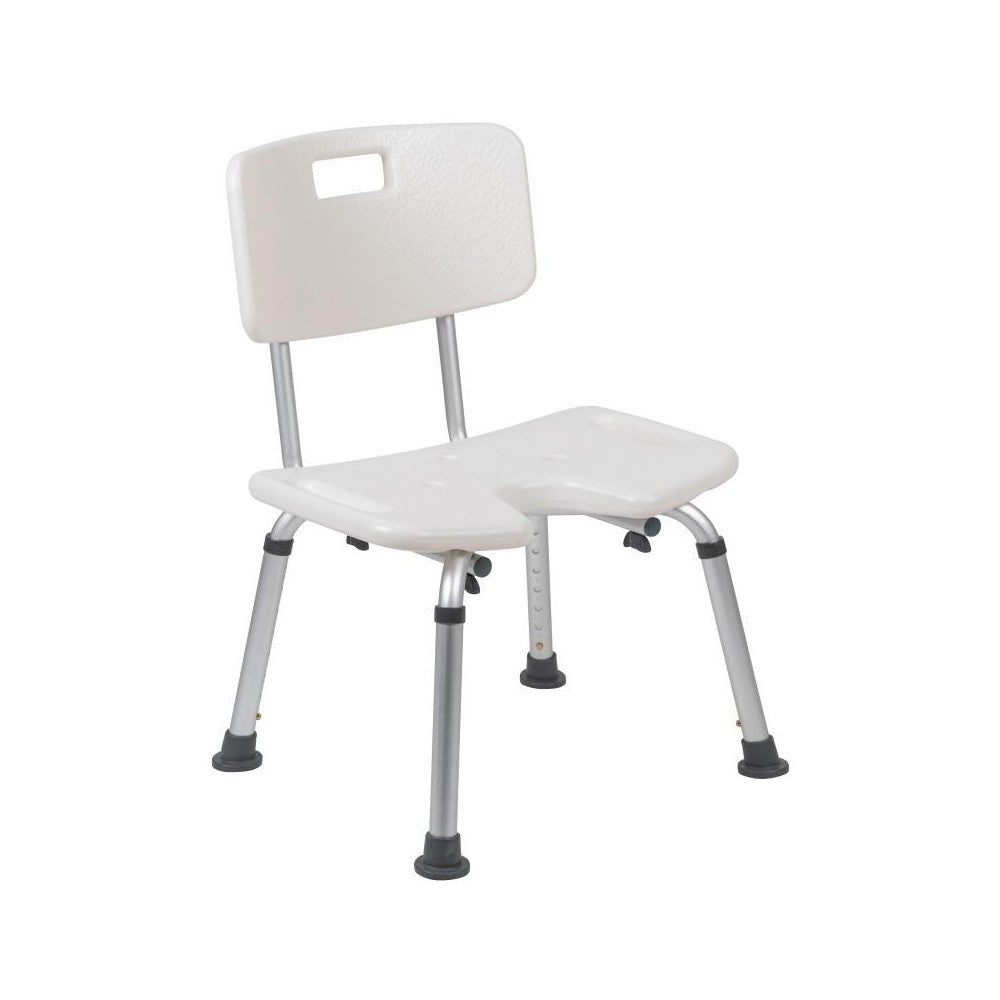Make showering a safer experience for the elders at your nursing home with a shower chair. Patients who groom themselves feel less insecure by them taking care of their own hygiene. The u-shaped bathroom chair provides ease of use hygiene care while the feet grip the floor for safety. Medical shower chairs are relied on heavily in hospitals and nursing homes but are well-suited for your home bathroom. Until you're fully recovered from your surgical procedure pick up this adjustable bath chair to take care of your surgical wounds. Remove the back for a backless stool version. The durable aluminum frame adjusts in height to accommodate users of varying heights.