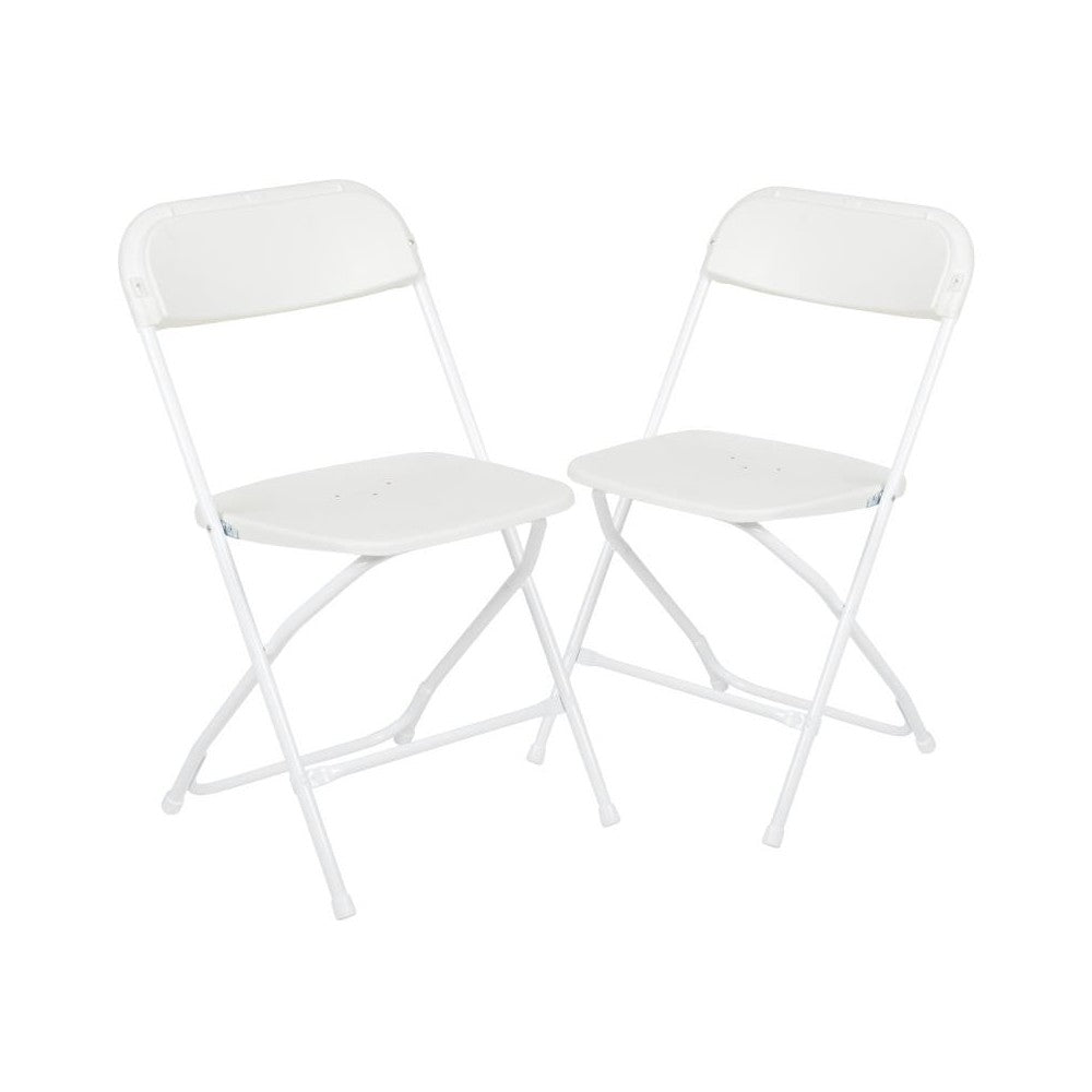 - Set of 2 Commercial Grade White Plastic Folding Chairs for indoor or outdoor events